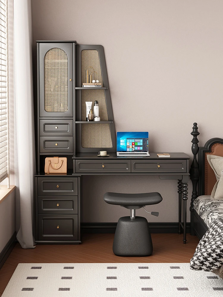 【フレンチスタイル】実木デスク&ブックシェルフ - コンパクトなL字型デザイン、壁付けハーフエンクロージャーで寝室にぴったり!おしゃれなインテリアに!