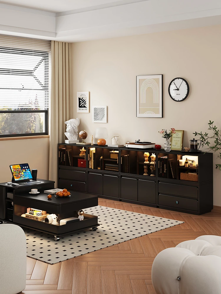 2025年新作!魅力的リビングルーム用本棚スタイルのテレビキャビネット - ダブルレイヤーデザイン、純粋な無垢材製组合キャビネット