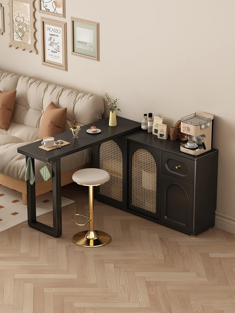 Vintage-Inspired Solid Wood Extendable Bar Table and Sideboard Combo - Ideal for Small Spaces with Double-Sided Design, Perfect for Living Room Elegance