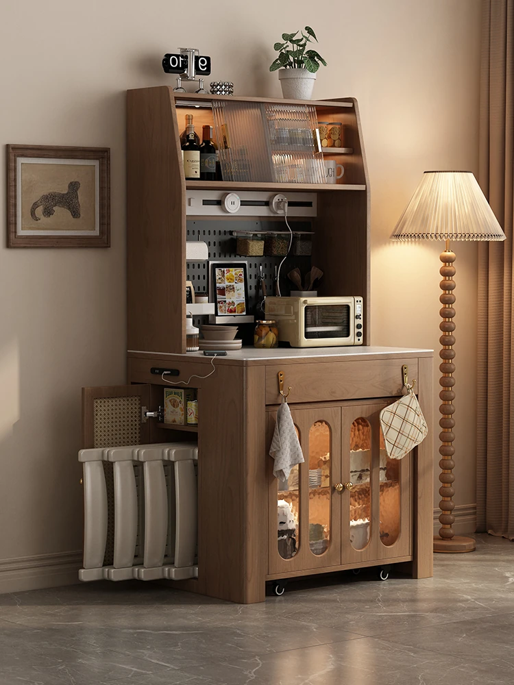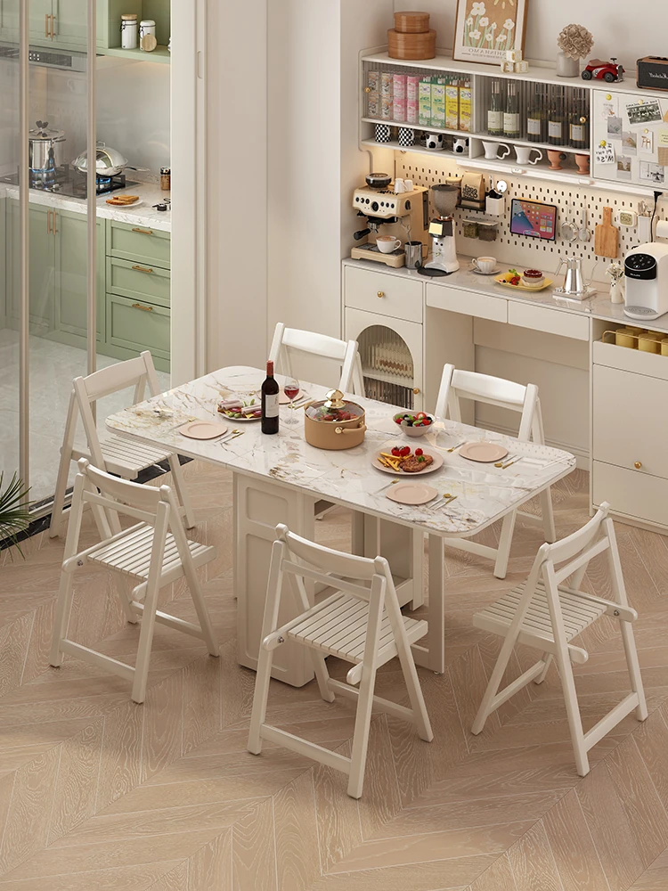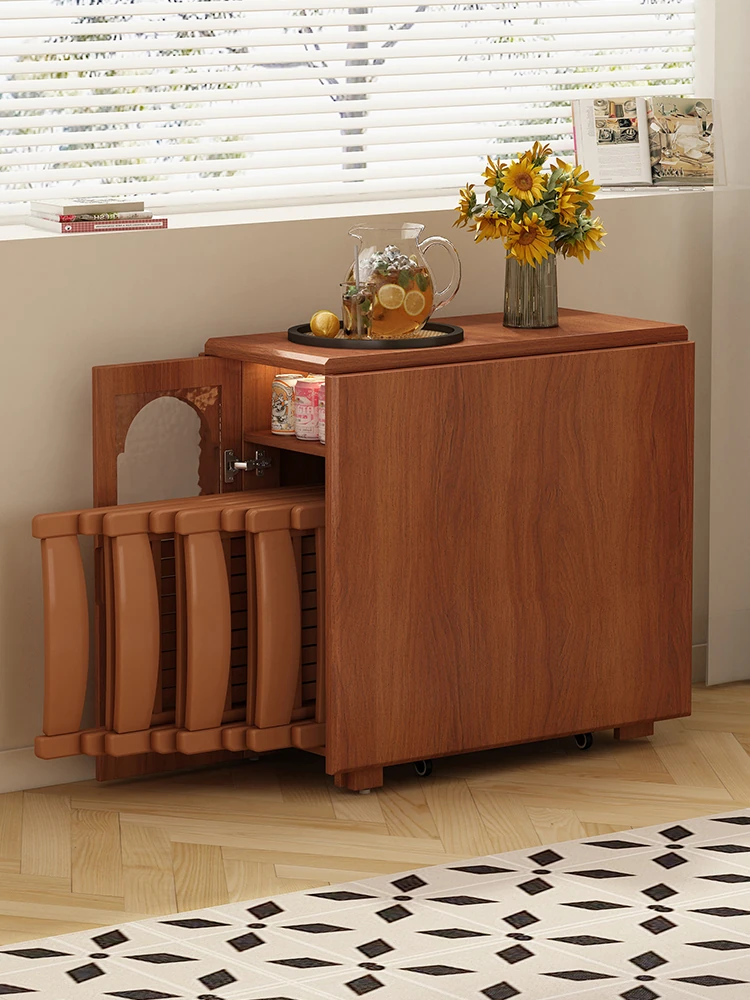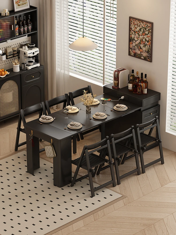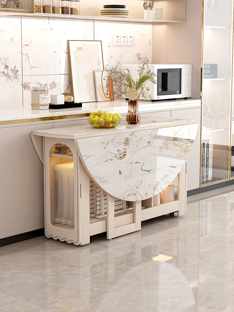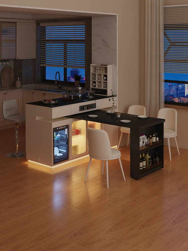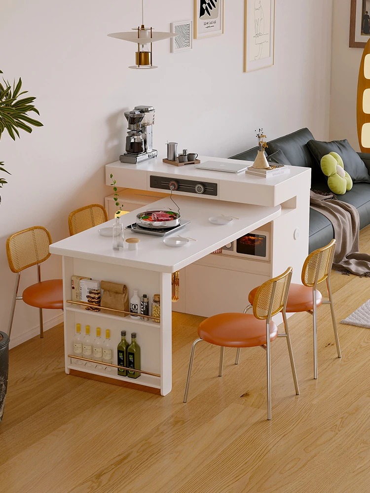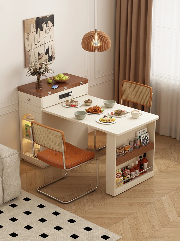 Nordic Extendable Stone Island Dining Table Set - Retro Multi-Functional Storage Cabinet & Dining Solution for Compact Spaces