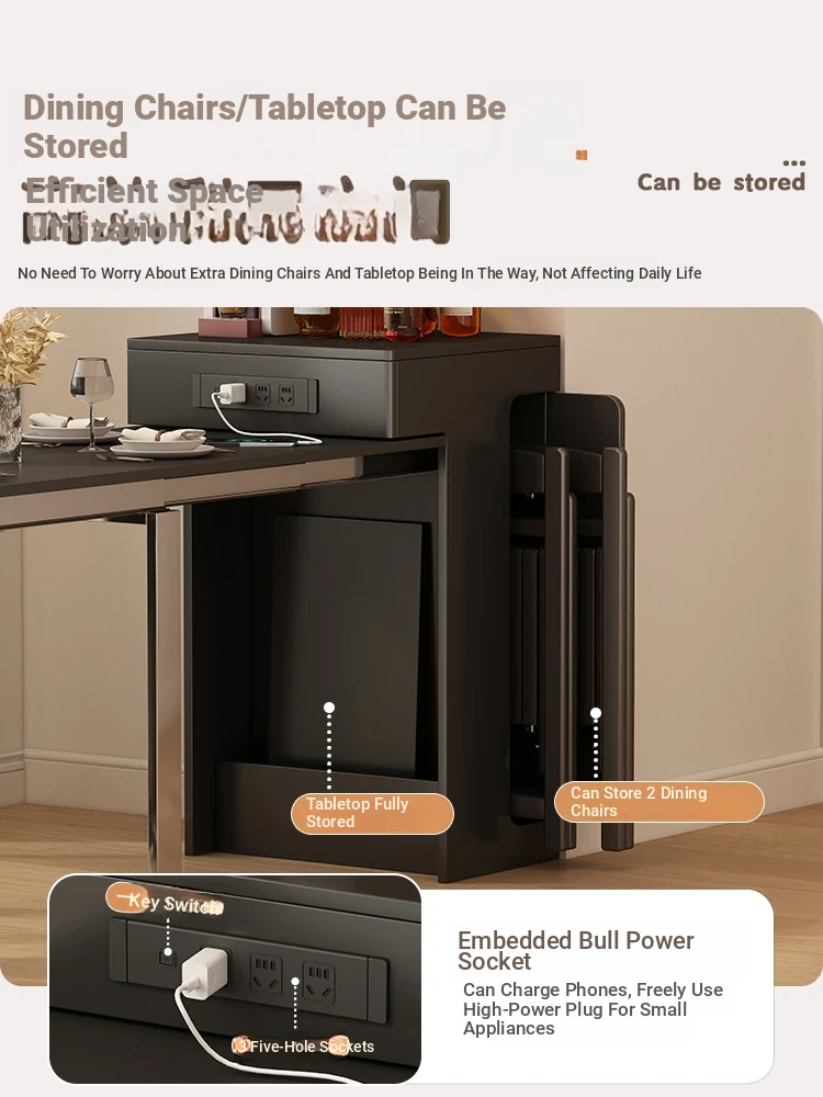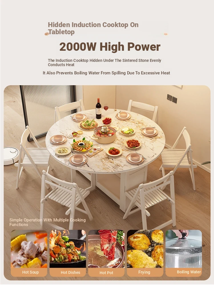 Creamy Style Ultra-Thin Folding Dining Table with Built-In Induction Cooker - Compact Space-Saving Design for Home Kitchen, Restaurant, or Dining Room with Storage 기능