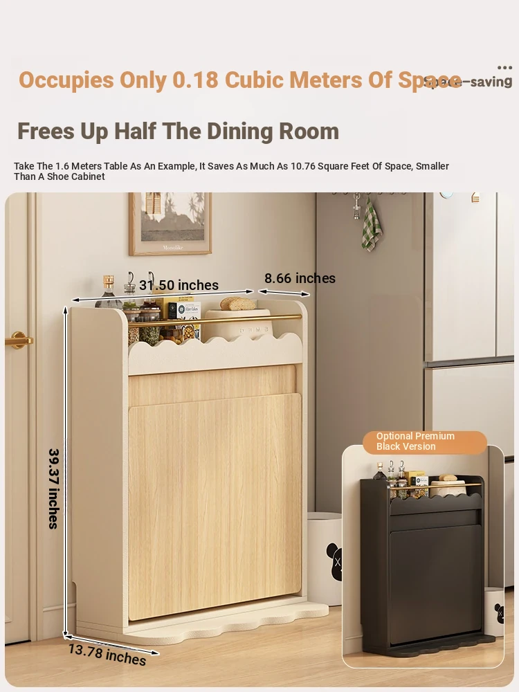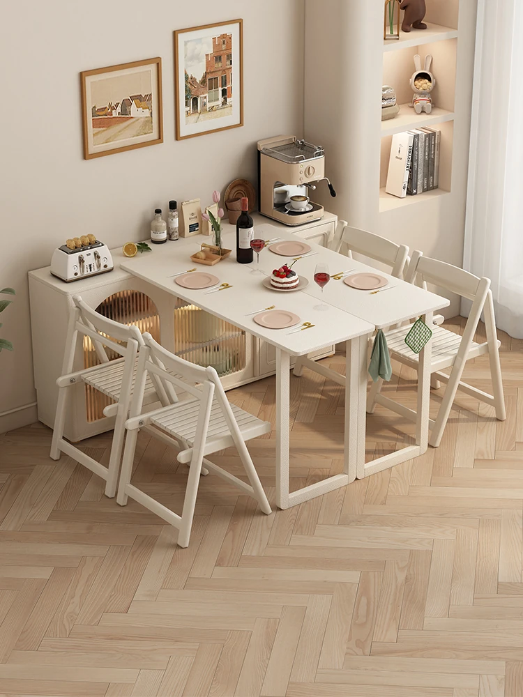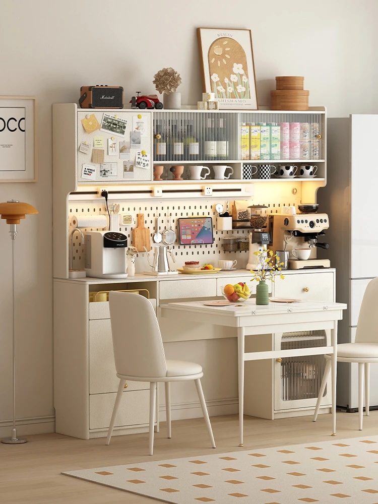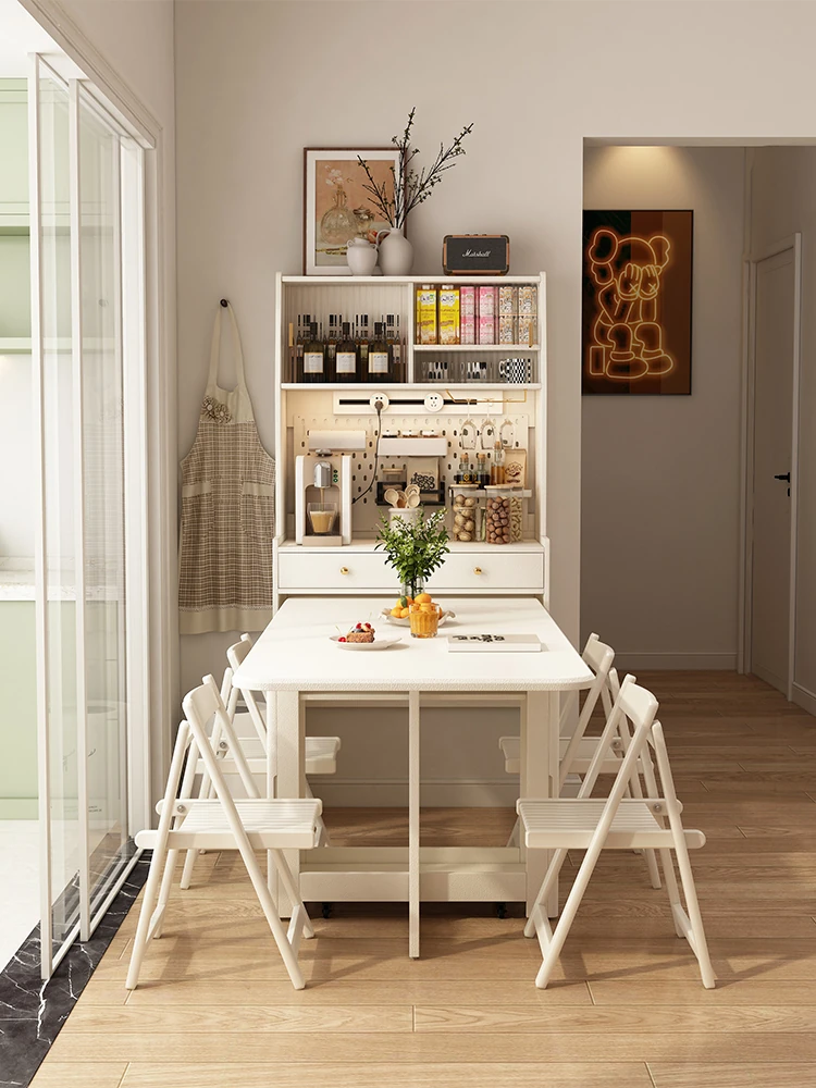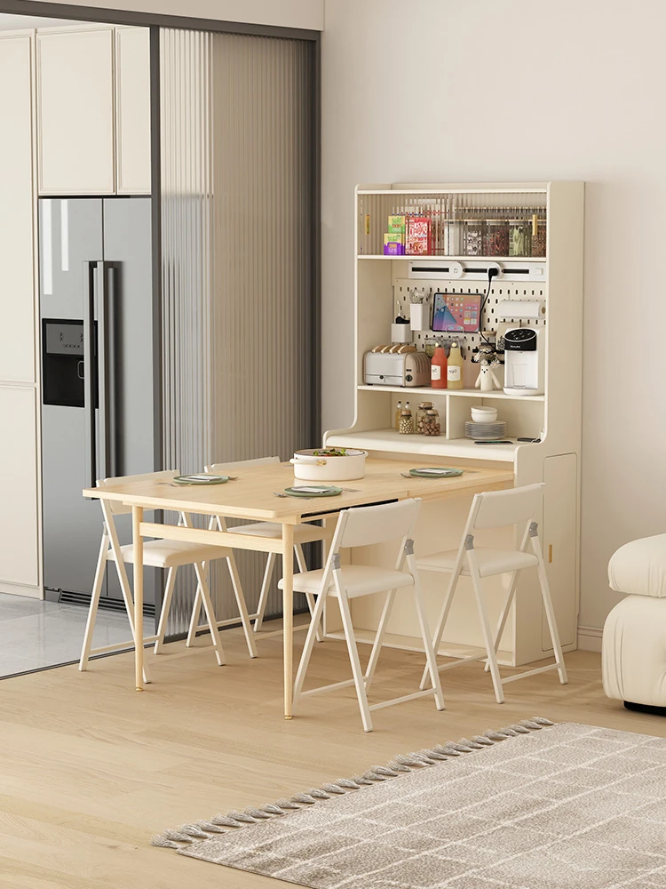 Creamy Chic Expandable Invisible Folding Dining Table with Storage Cabinet - Multi-Functional Island Counter and Sideboard for Small Spaces