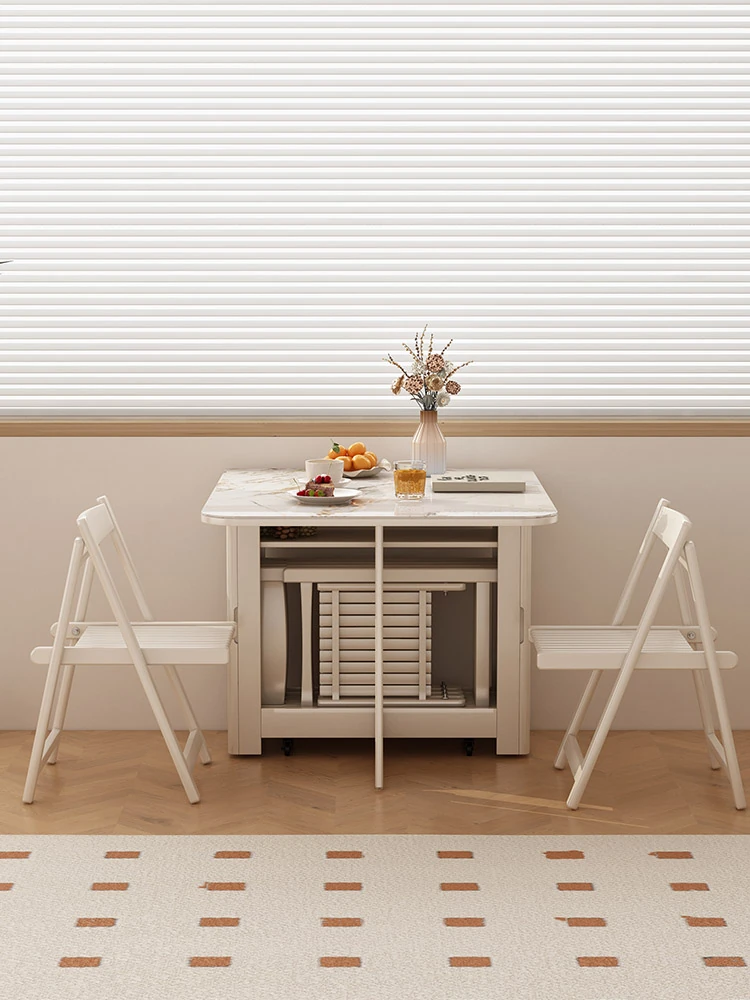 2024 New Compact Cream-Style Folding Dining Table Set for Two - Ideal for Small Spaces - Includes Built-in Induction Cooker