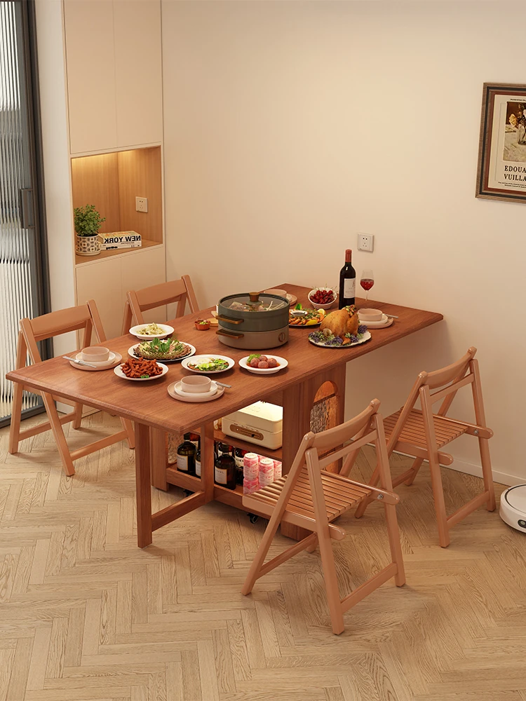 Expandable Solid Wood Folding Dining Table and Chair Set for Small Spaces - 2024 New Compact Home-Friendly Foldable Table
