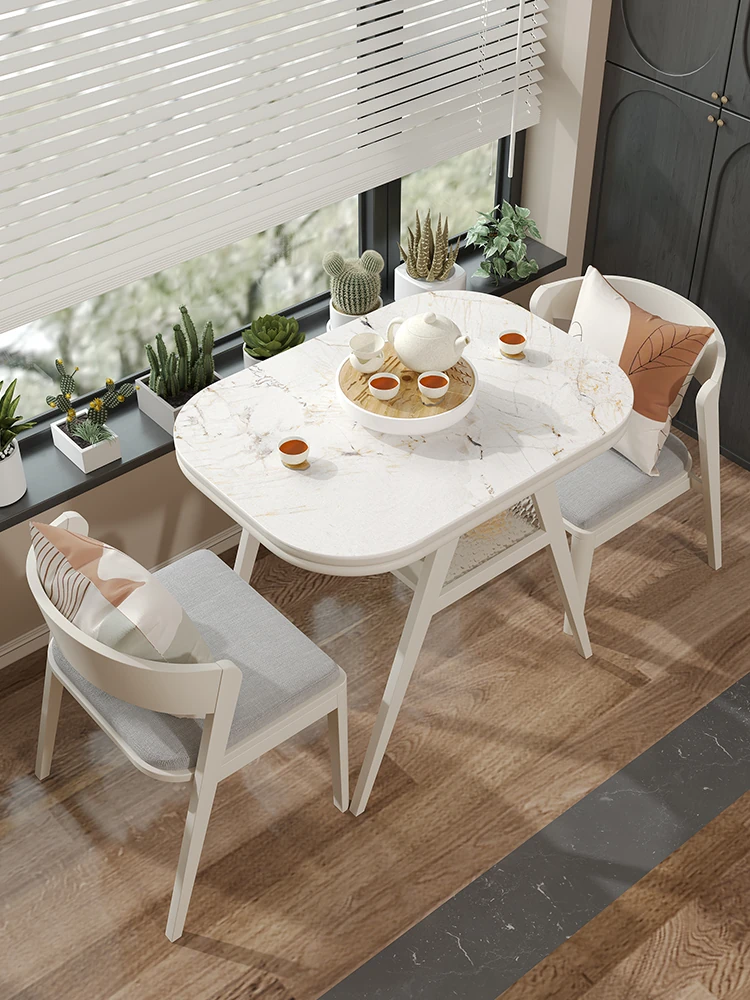 2025 New French Style Extendable 1.2m Porcelain Slab Dining Table for Small Spaces – Elegant & Versatile Solution for Modern Homes