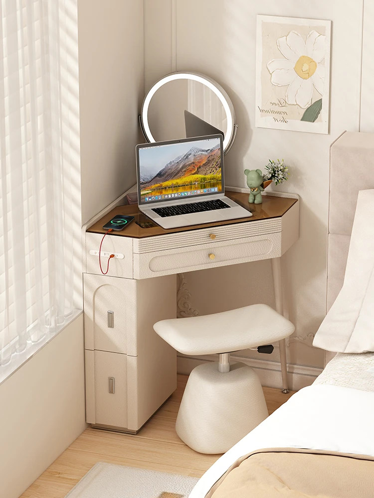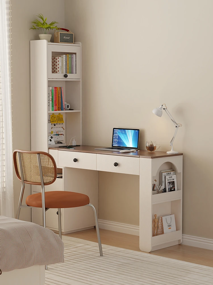 Cream-Style Compact Corner Desk with Integrated Storage Cabinet for Adults – Perfect for Small Bedrooms or Apartments