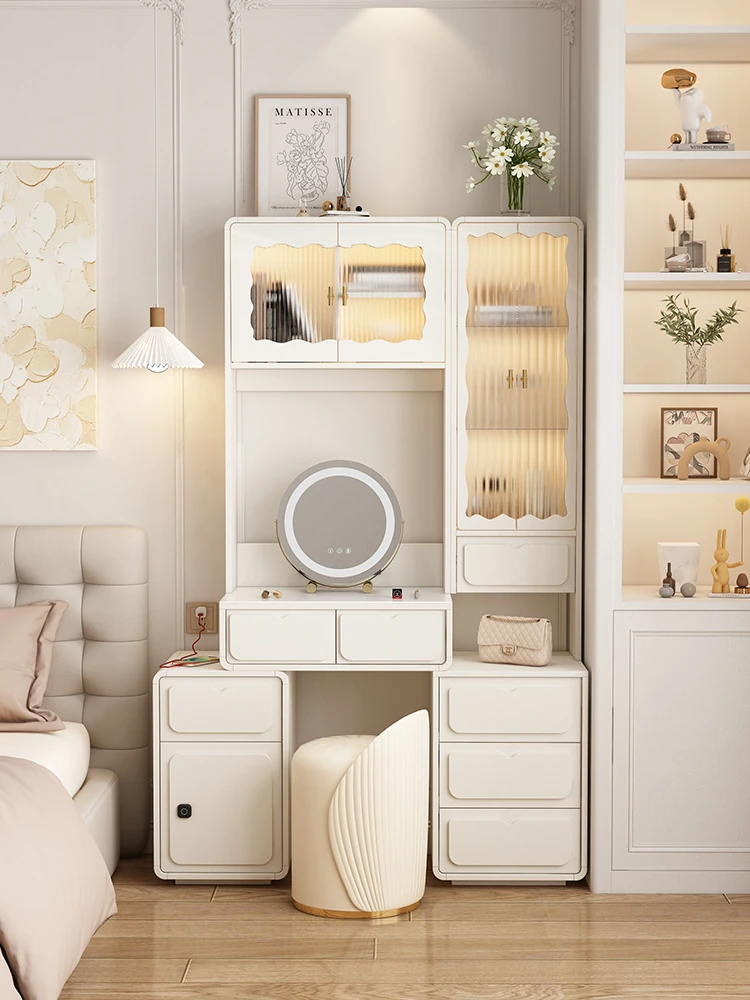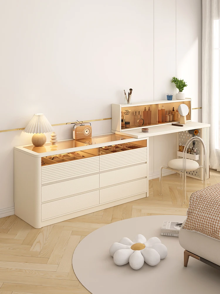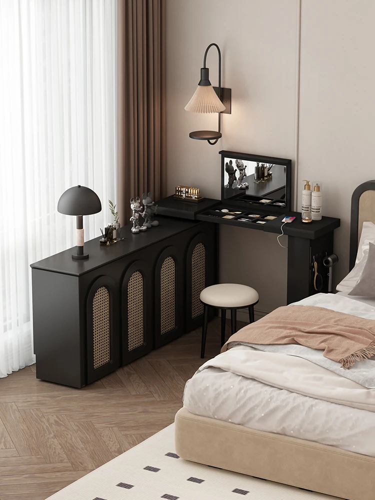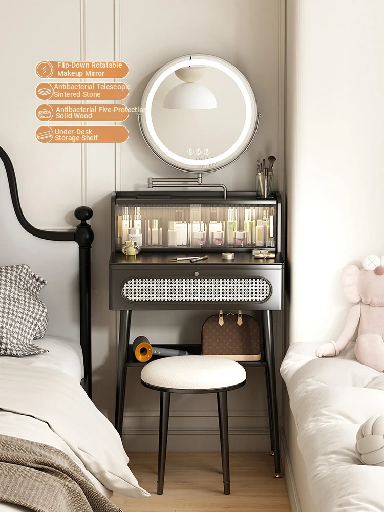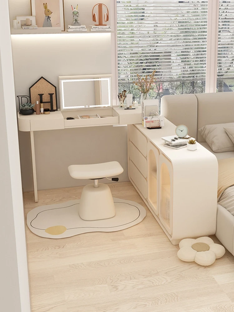 Compact Vanity and Dresser Combo: Ultra-Thin 30cm Design, Perfect for Small Spaces - Expandable Corner Makeup Table and Narrow Bed-End Storage Solution