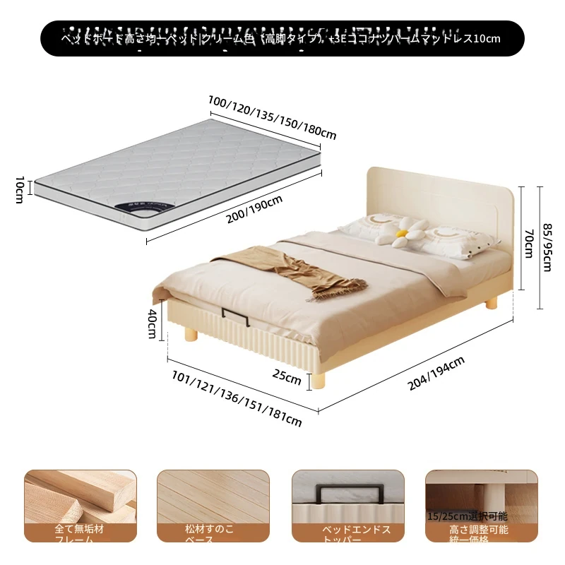 クリームスタイル | ハイチェア【敷き詰め15CMパイン材ベッドボード】