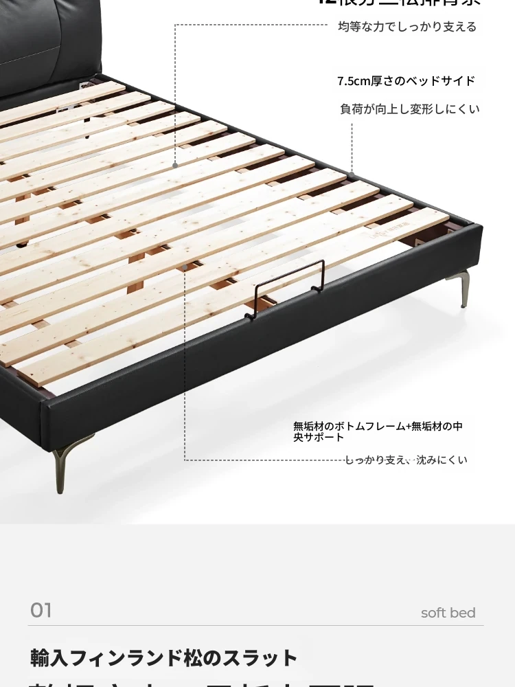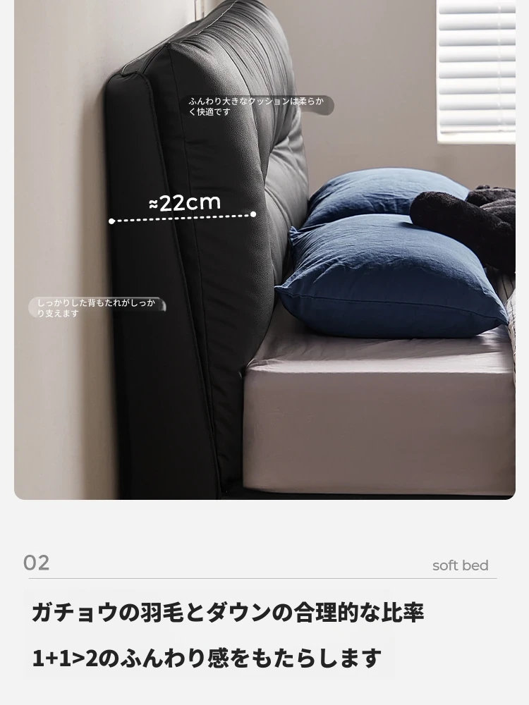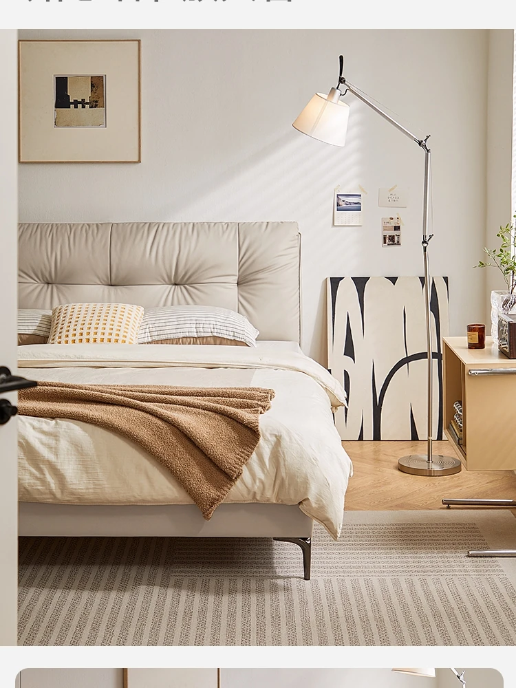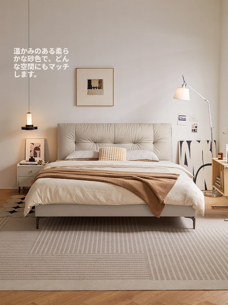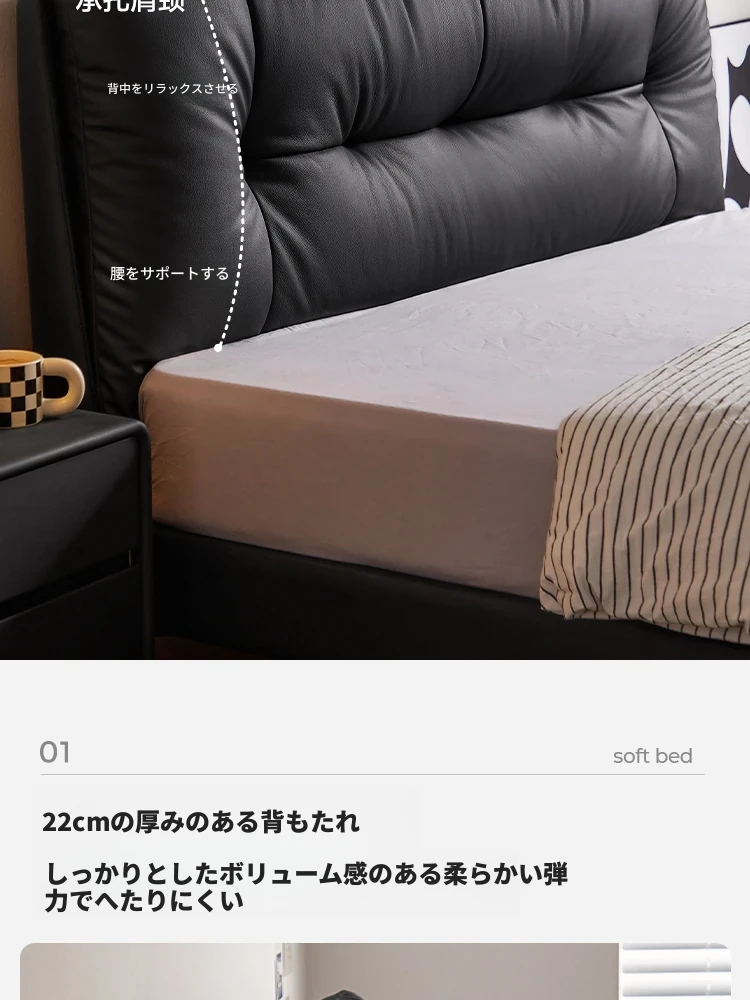 林氏家居 イタリアンミニマリズム ブラック本革ベッド 主寝室用 大型ダブルベッド 高級感あふれるソフトパッケージ家具 木製仕上げ