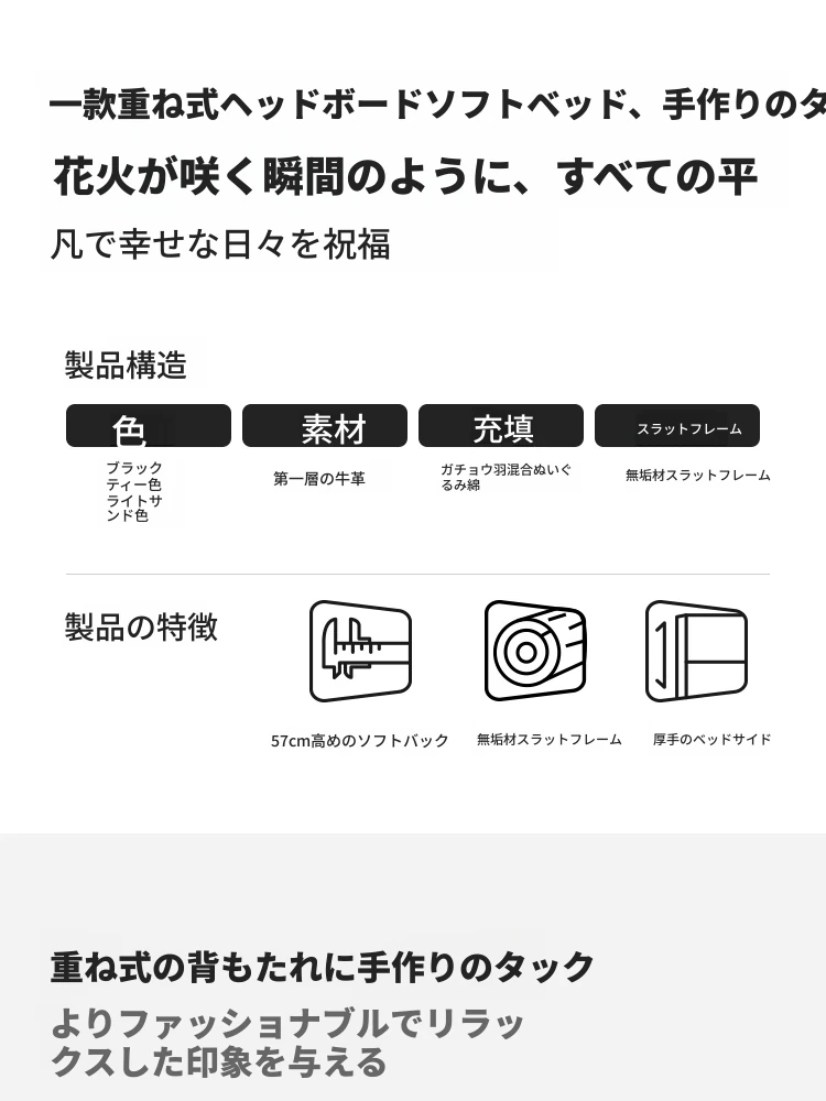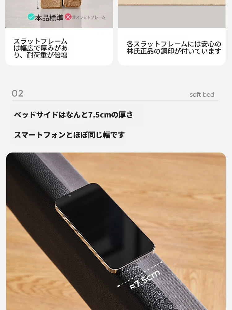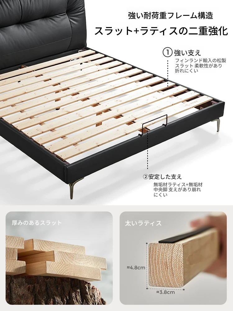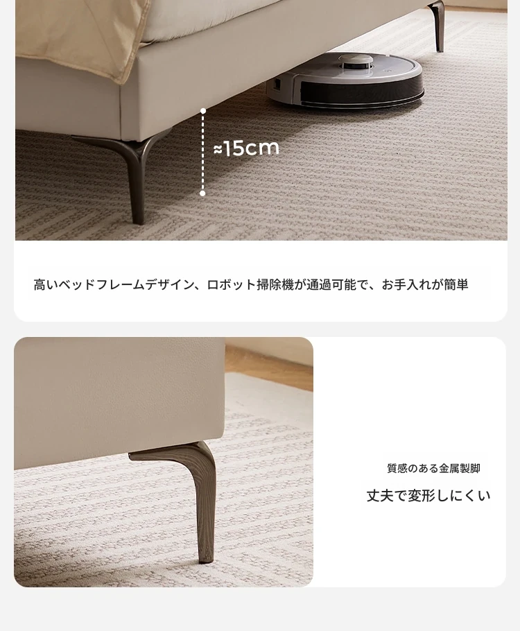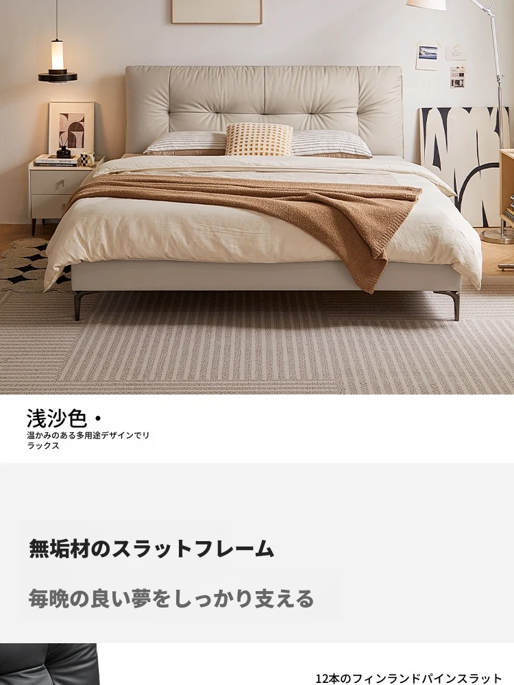 (4)【ライトサンド色|厚手トップグレインレザー】シングルベッド