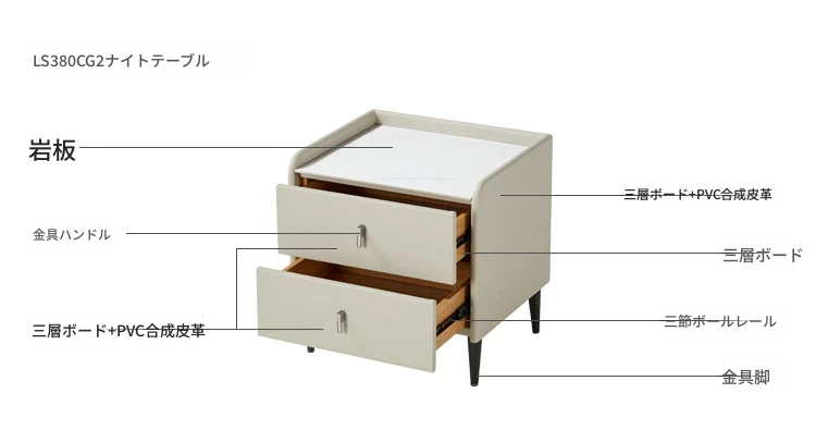 (6)【ライトサンド色|厚手トップグレインレザー】シングルベッド+マットレス+ナイトテーブル