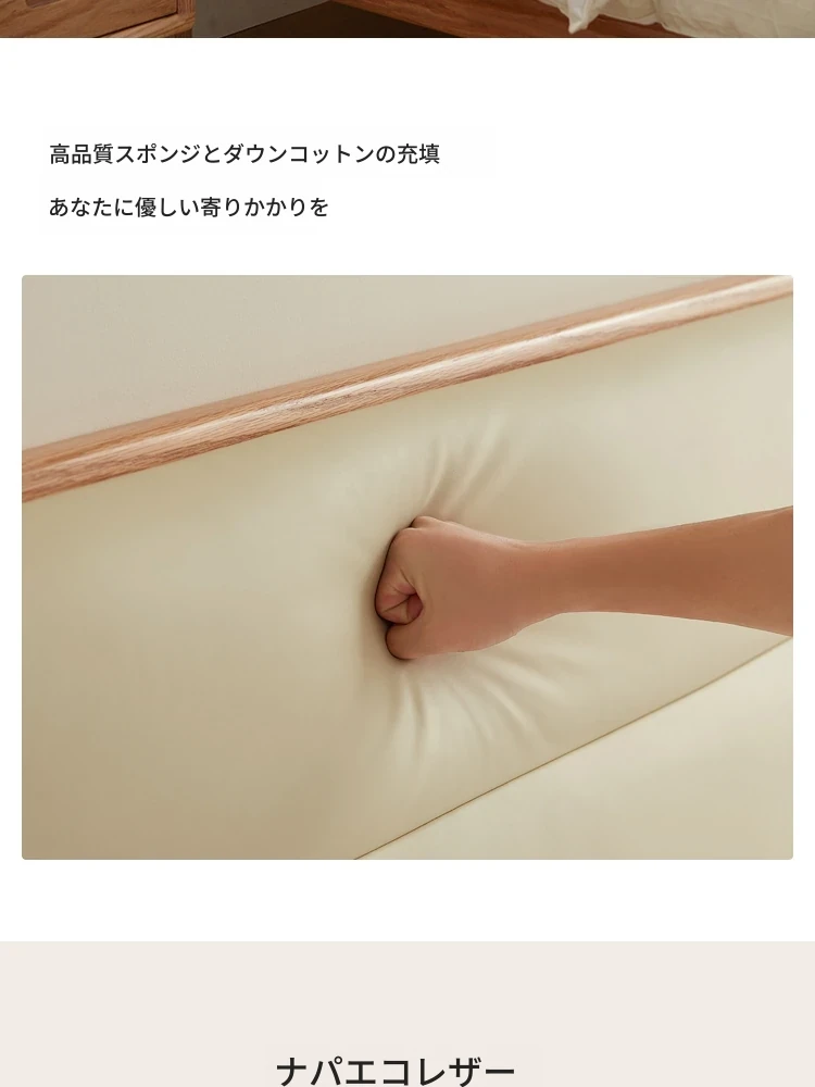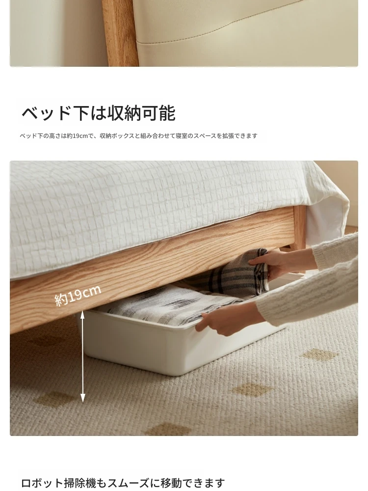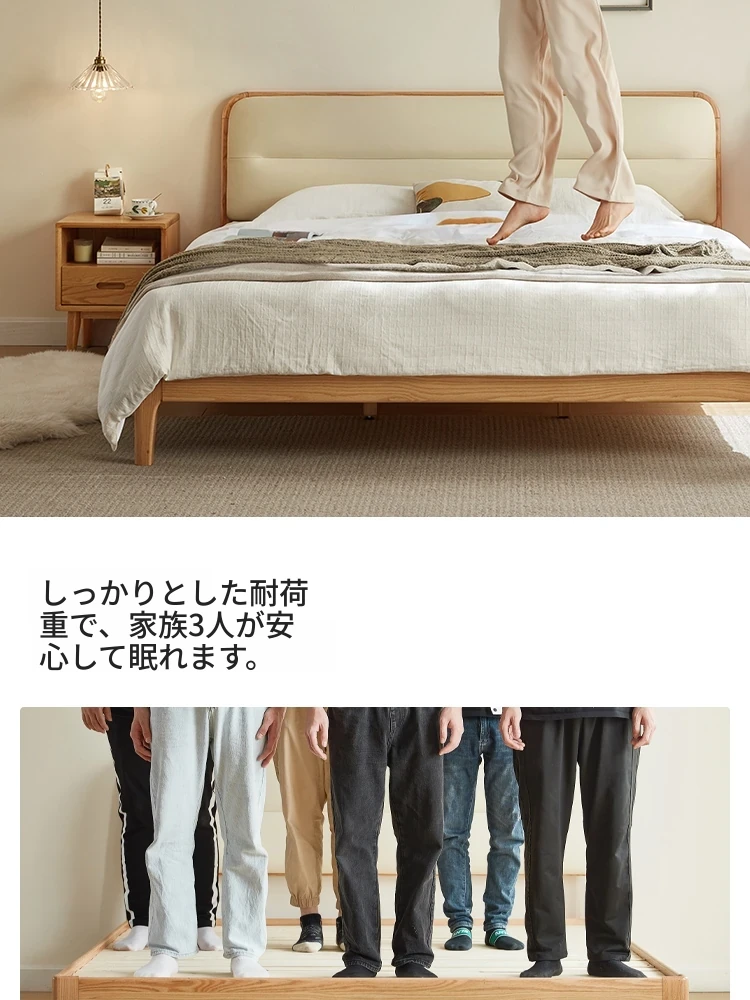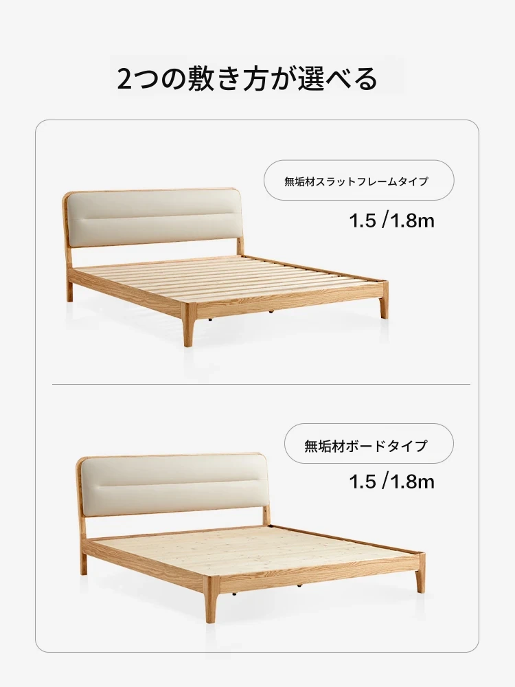 【本革タイプ|ベッドボード|セット】無垢材ベッド+マットレスA(200mm)