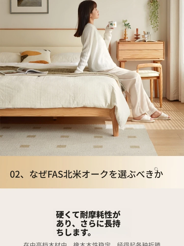 林氏家居 2025年新作 オーク材 丸みを帯びたデザインのダブルベッド 1.5m 高級ウレタン背もたれ付き主寝室用 天然木仕様・安心の品質
