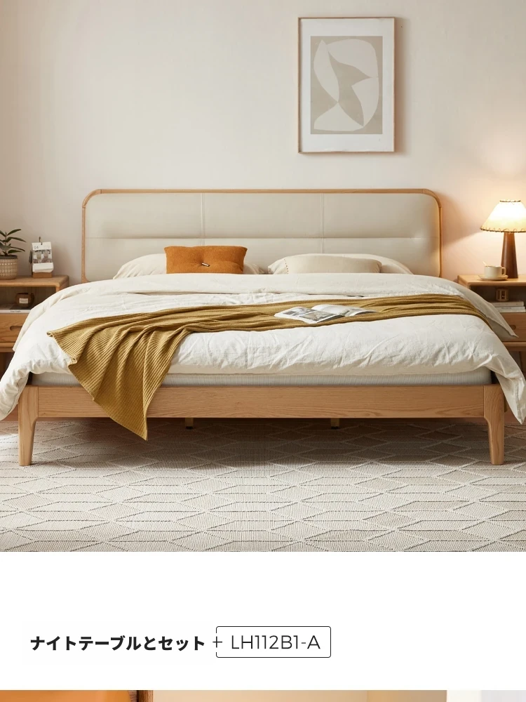 【本革タイプ|ベッドボード|セット】無垢材ベッド+ナイトテーブル