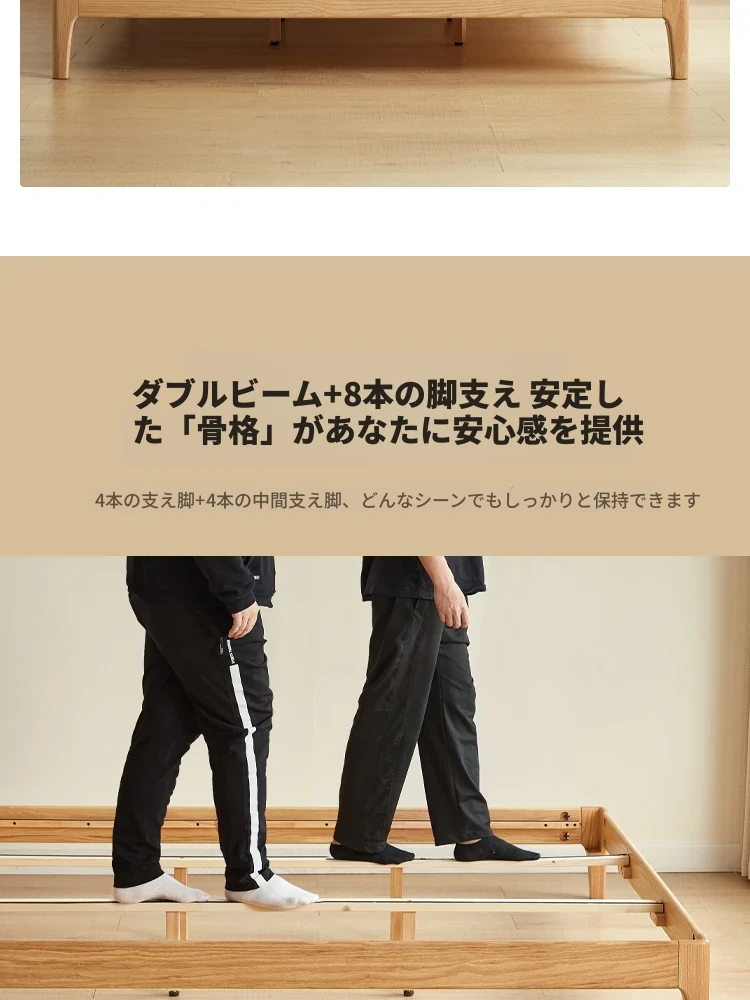 【本革タイプ|スラット|セット】無垢材ベッド+マットレスA(200mm)