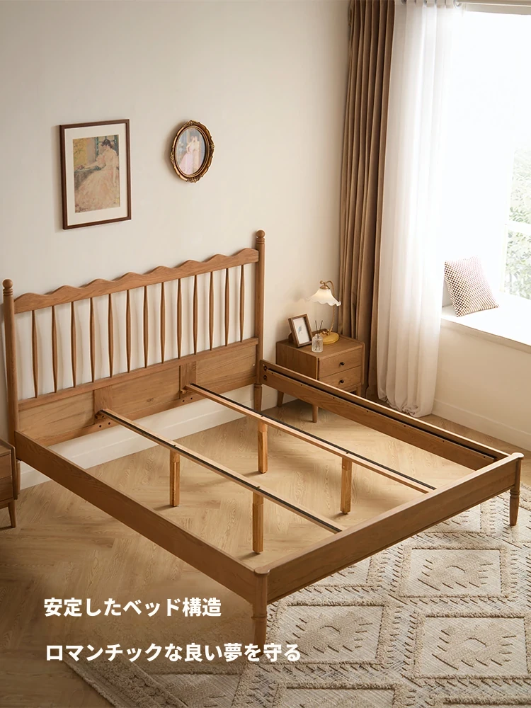 リンシー家具 ソフトパック 無垢材ベッド 1.5m フランス風 レトロ チェリーウッド ダブルベッド 2025年新作 - 上質な睡眠を提供する、洗練されたデザインのベッドです。