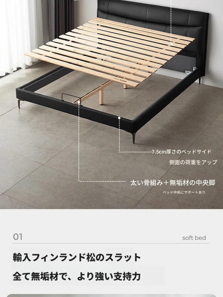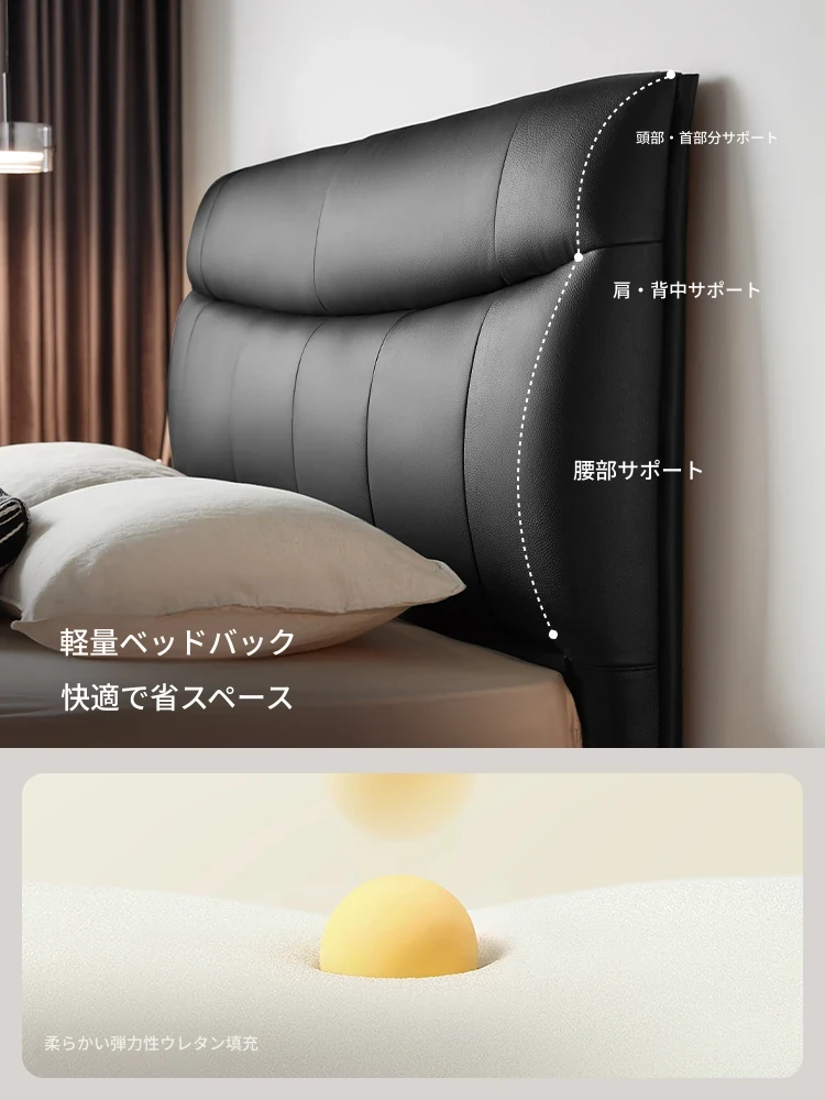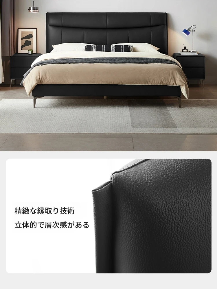 リンシー家具 高級感あふれるブラックレザー シンプルモダンなダブルベッド 主寝室用のスタイリッシュな家具 ウッド仕立て 【高品質なライフスタイルを提案】
