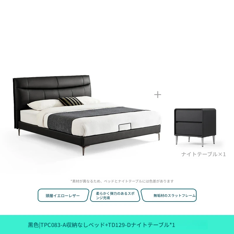 (8)【本革|ブラック】シングルベッド+ナイトテーブル