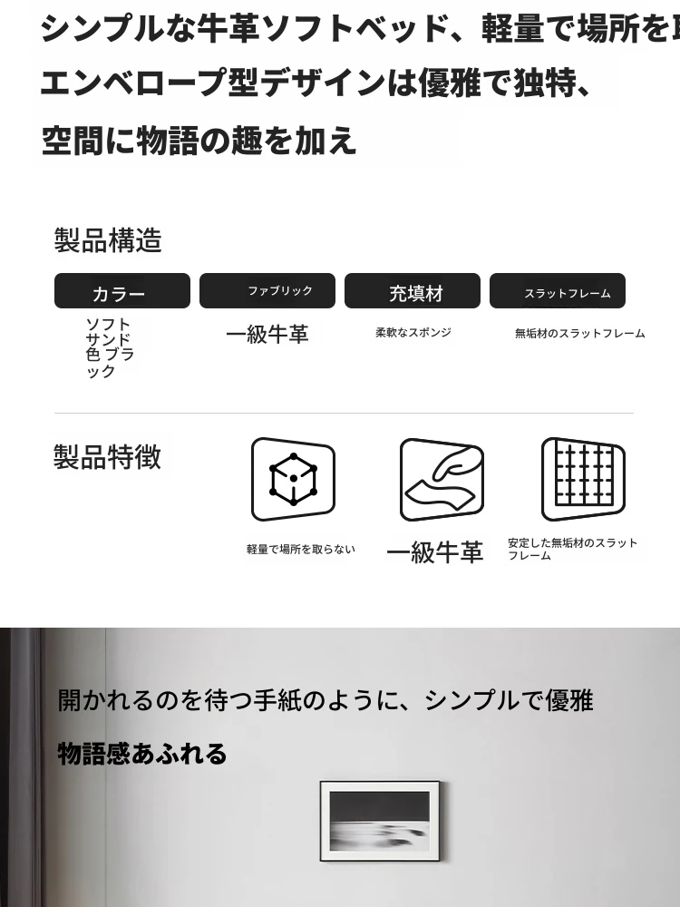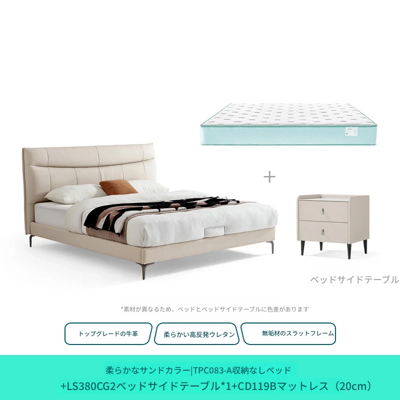 (2)【本革|ソフトサンド】シングルベッド+マットレス