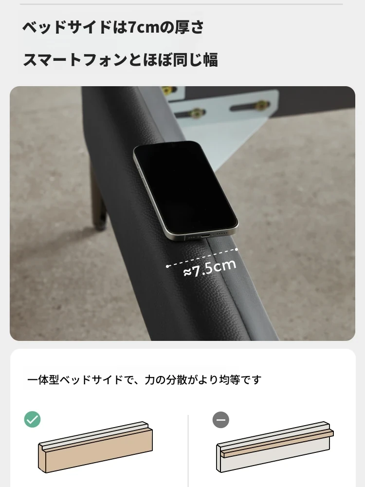 (4)【本革|ソフトサンド】シングルベッド+ナイトテーブル