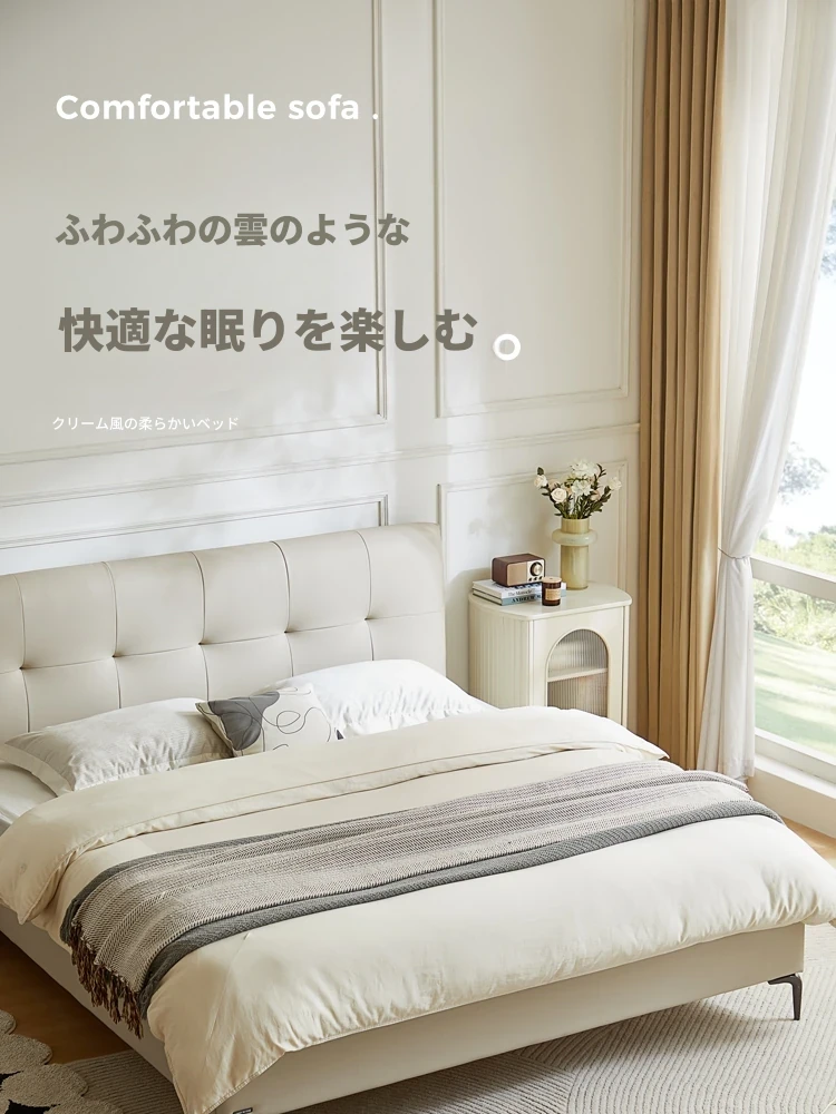 林氏家居 2025新款!奶油风柔软包床,主卧双人设计,让您与伴侣互不打扰,尽享完美睡眠!TBC103木业精品,舒适与时尚兼具!