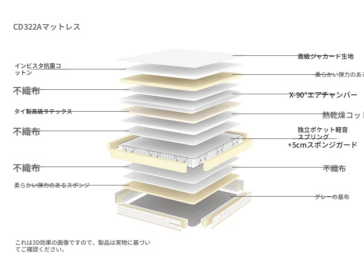 (5)【チーズホワイト】シングルベッド+CD322Aマットレス