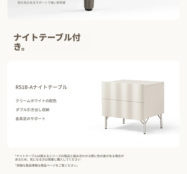 (14)【チーズホワイト】シングルベッド+ナイトスタンド