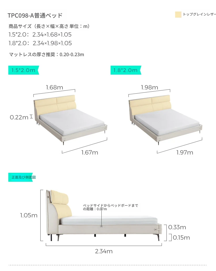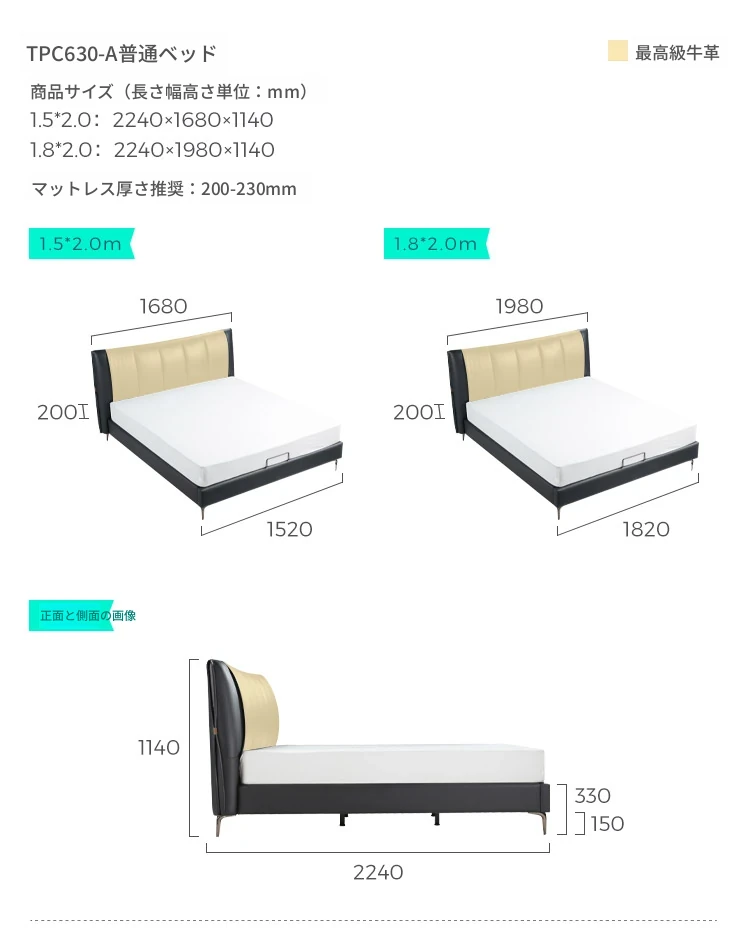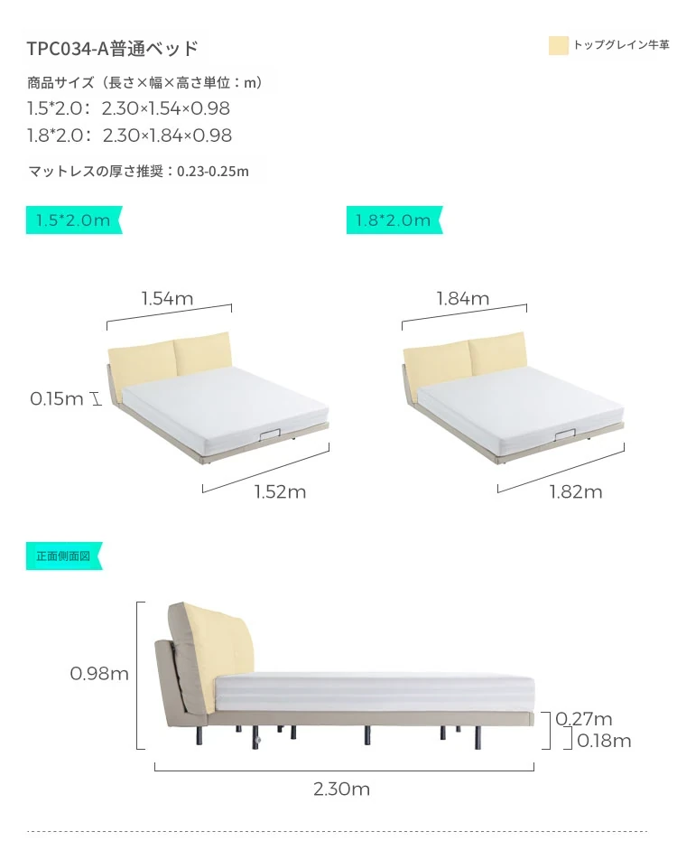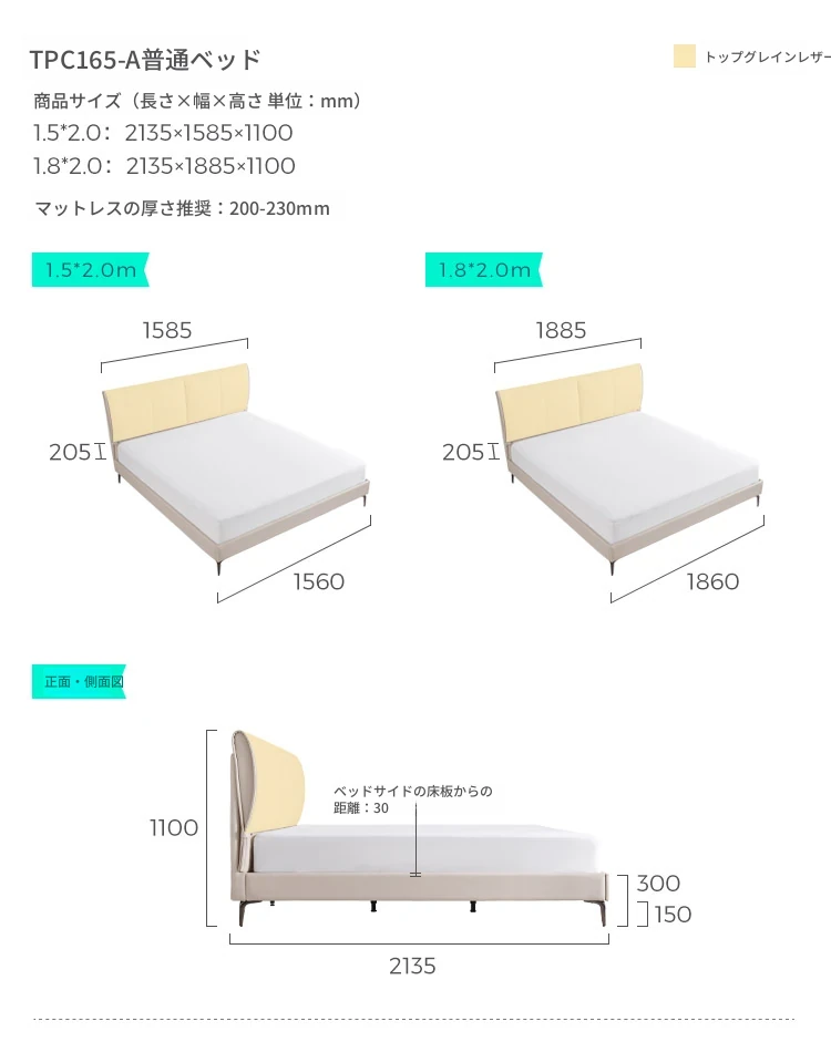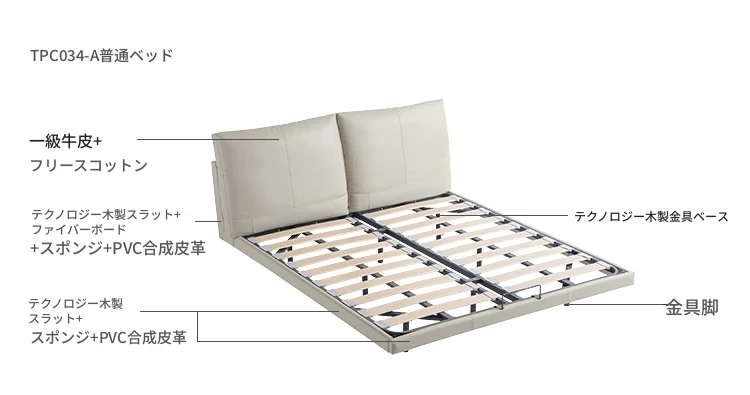 【トップグレイン牛革タイプ|ライトグレー】TPC034-A浮遊ベッド