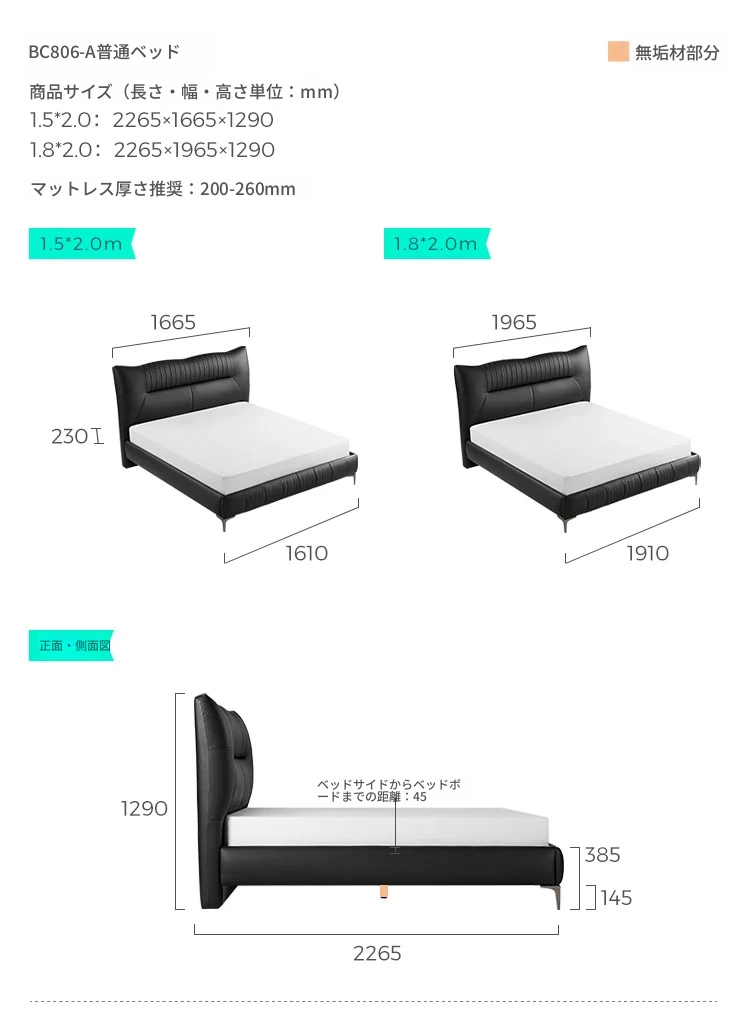 【マッドブラック】BC806-A収納なしベッド