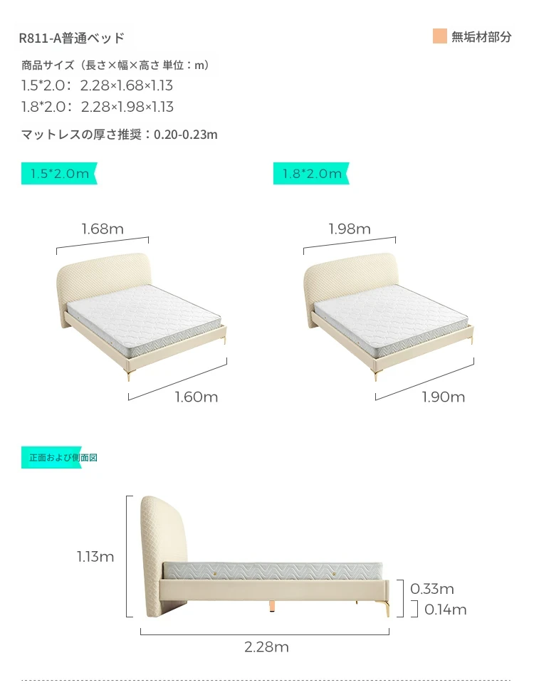【エコレザータイプ|アイボリー】R811-A収納なしベッド