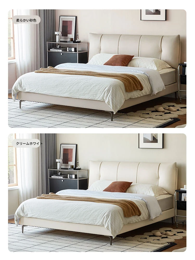(5)【トップレザー|チーズホワイト】シングルベッド