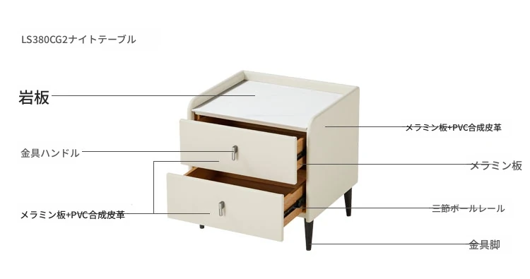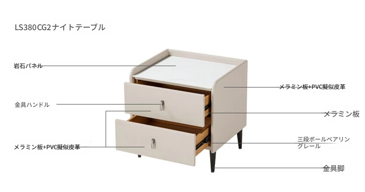 (3)【トップレザー|ソフトサンド】シングルベッド+ナイトテーブル