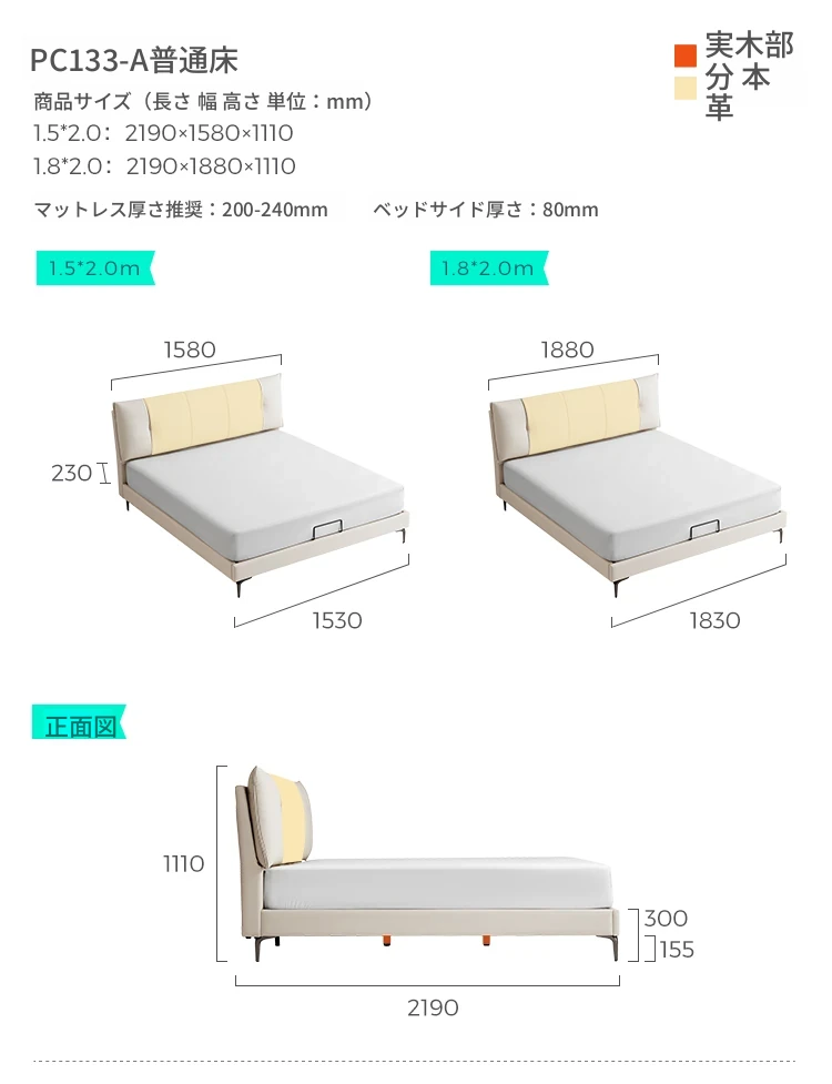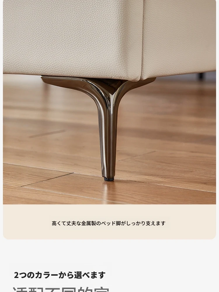 (8)【トップレザー|チーズホワイト】シングルベッド+マットレス+ナイトテーブル