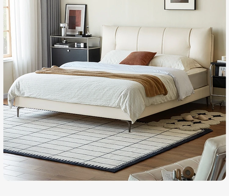 リンシ家居のスリムエッジ薄型レザー仕上げダブルベッド—小さな部屋にもぴったり!モダンでシンプルなデザインが魅力。快適な寝心地で、あなたの寝室をスタイリッシュに演出します。