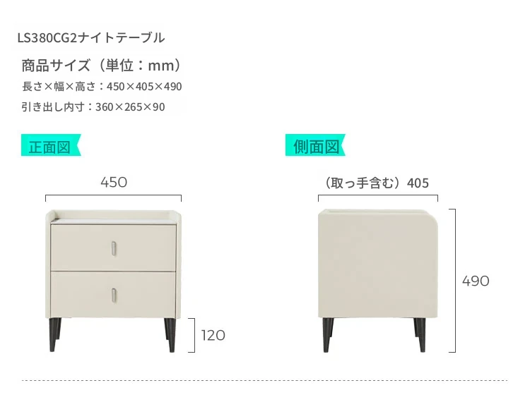 (7)【トップレザー|チーズホワイト】シングルベッド+ナイトテーブル