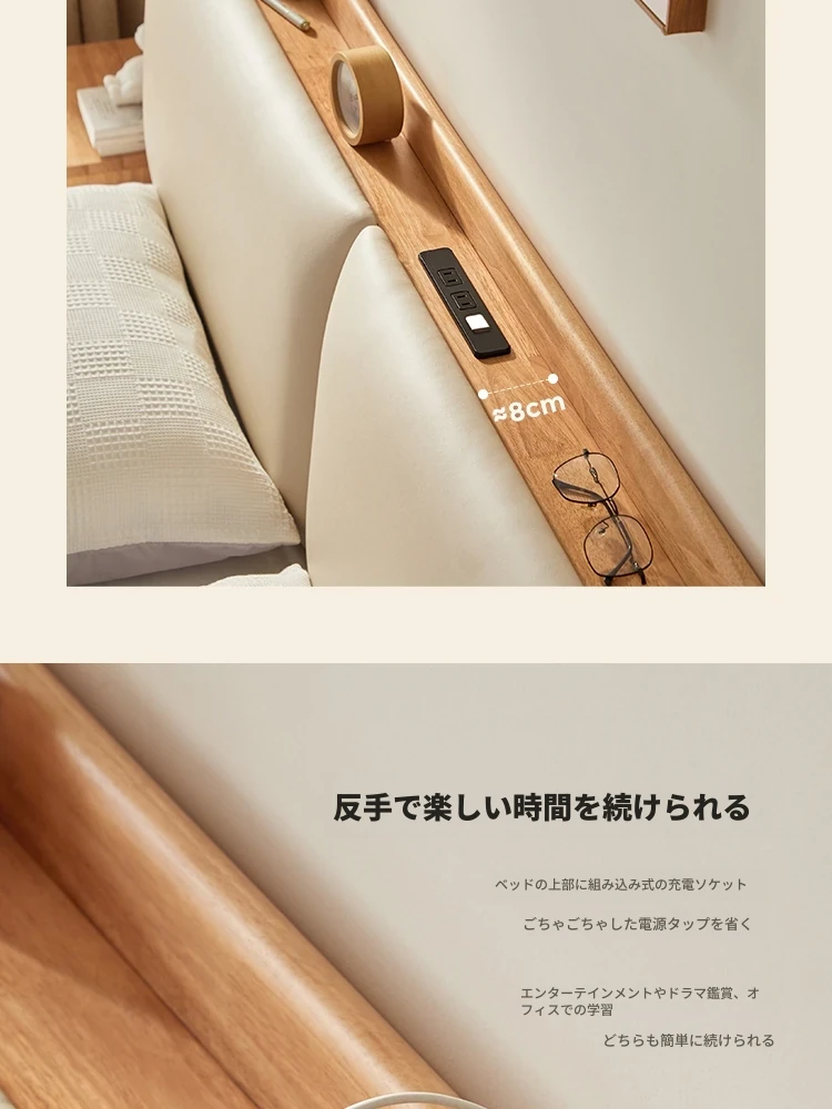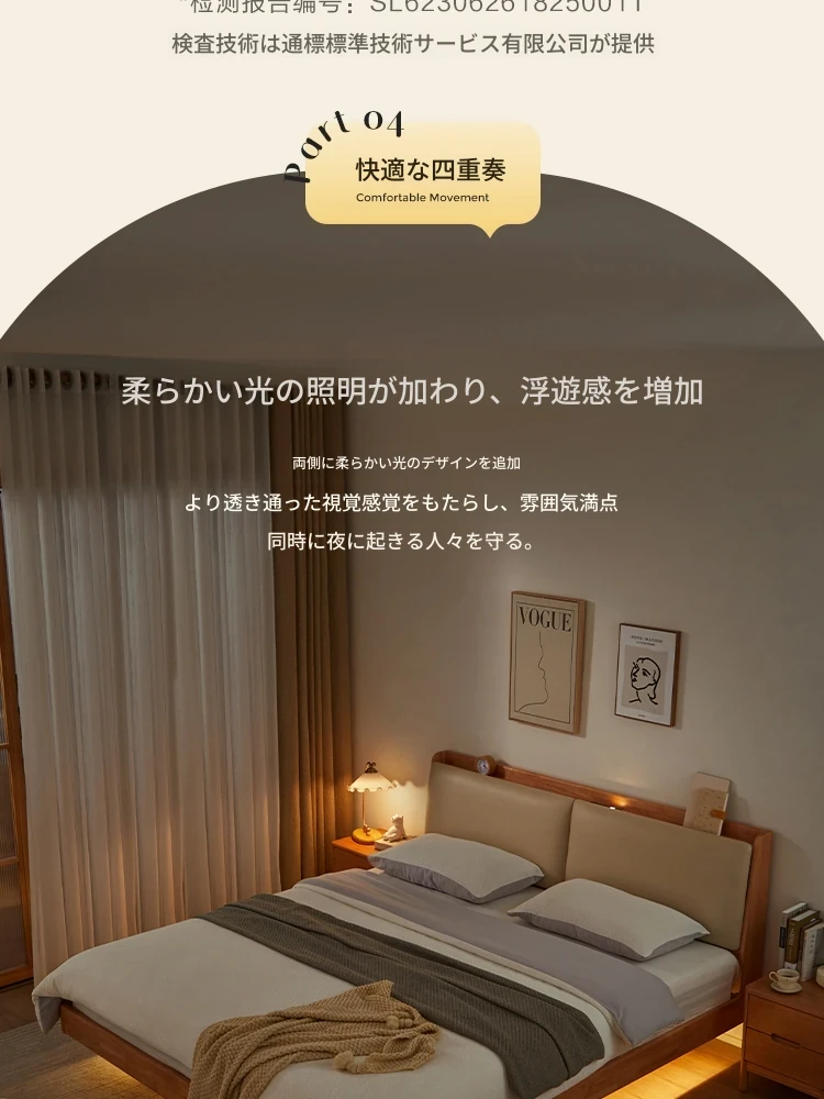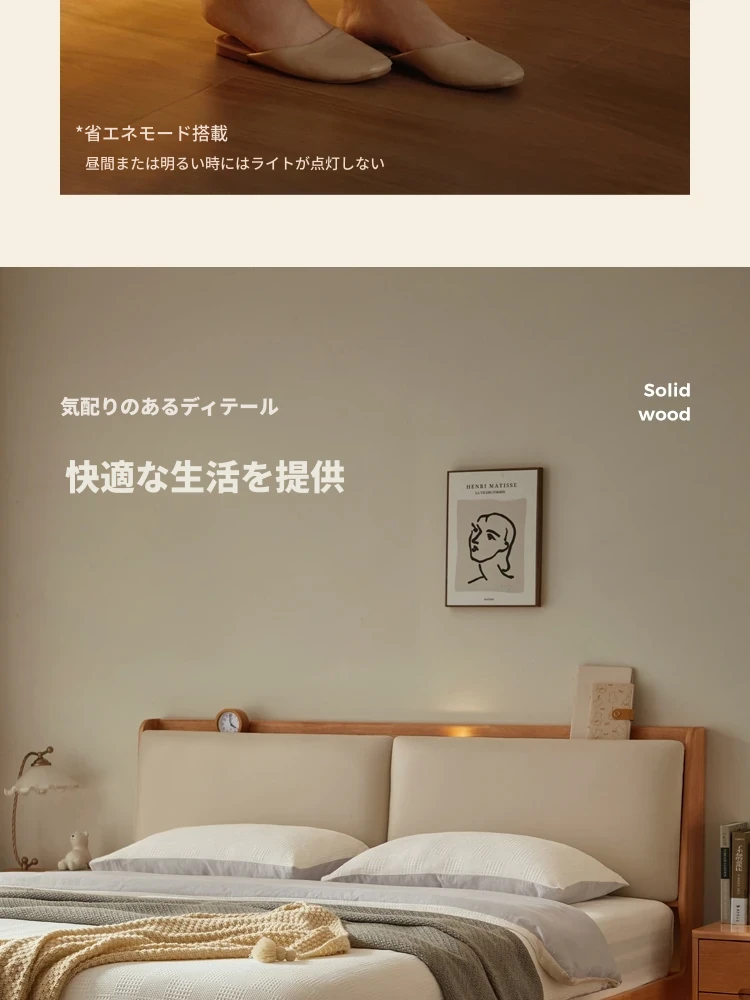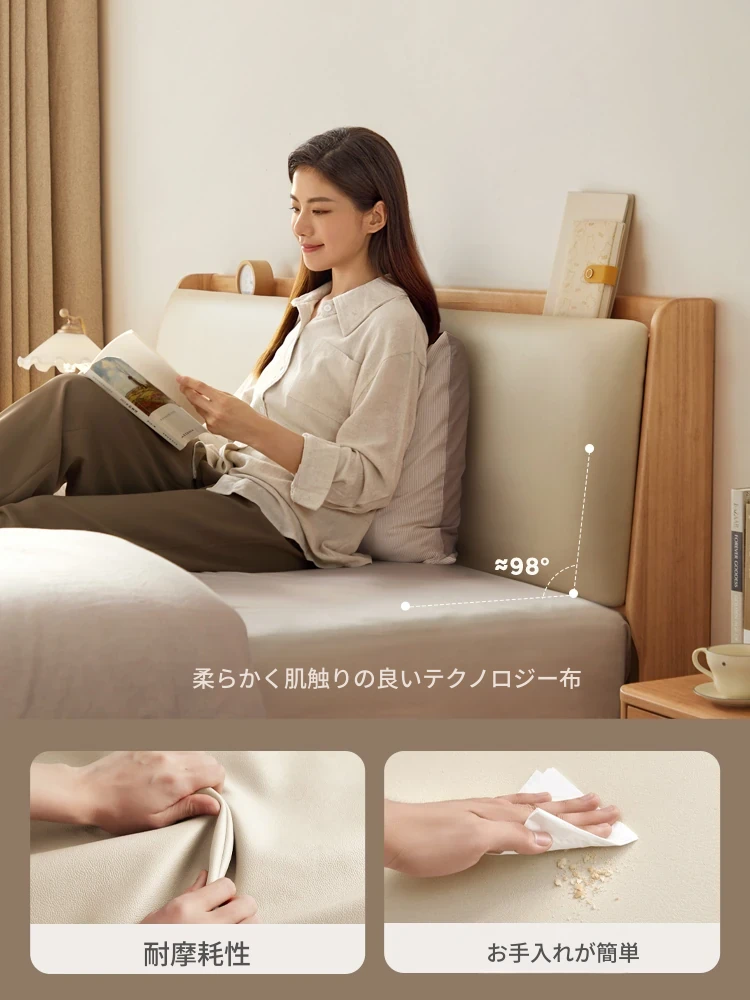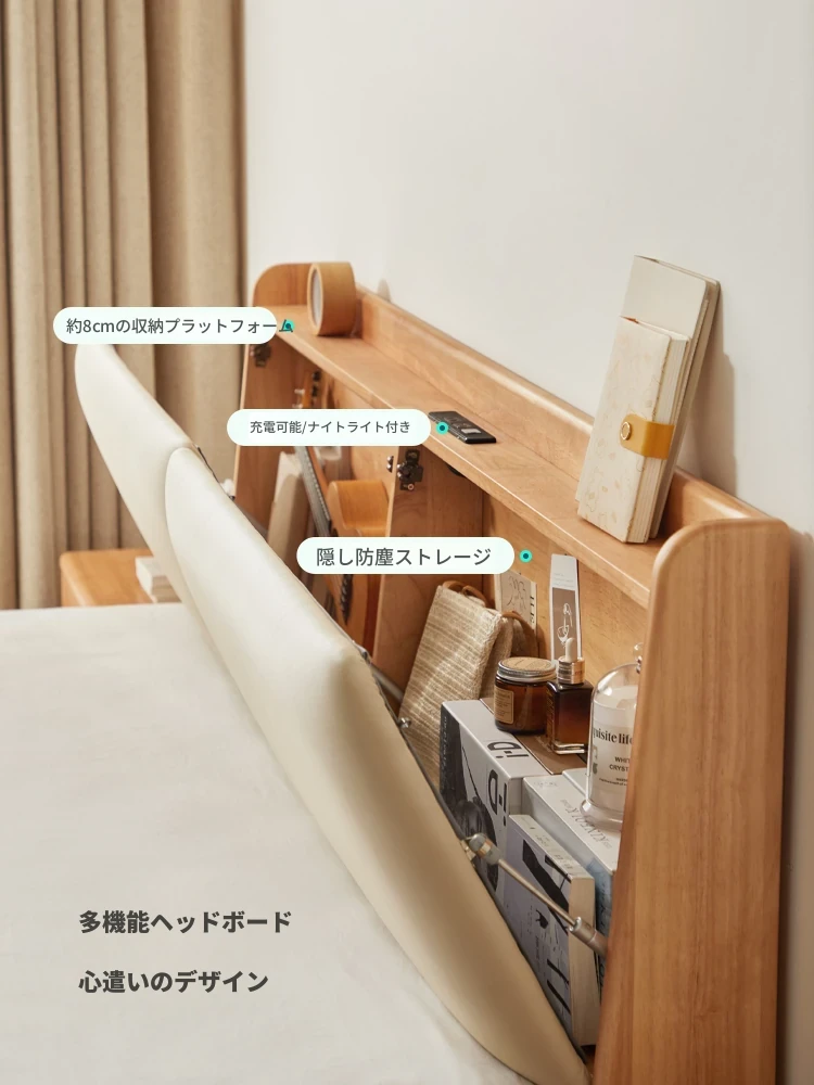 林氏家居 北欧スタイルの天然木製1.5m浮遊式ソフトパッキングダブルベッド - スタイリッシュな収納ヘッドボード付き、快適な眠りをサポートする高品質なデザイン!