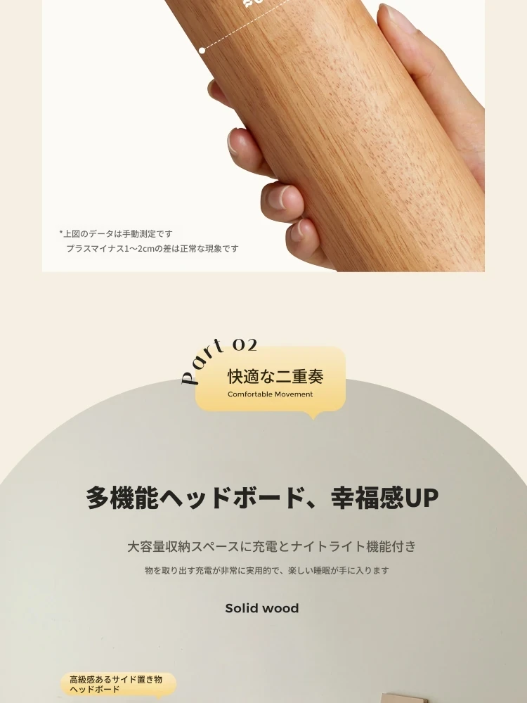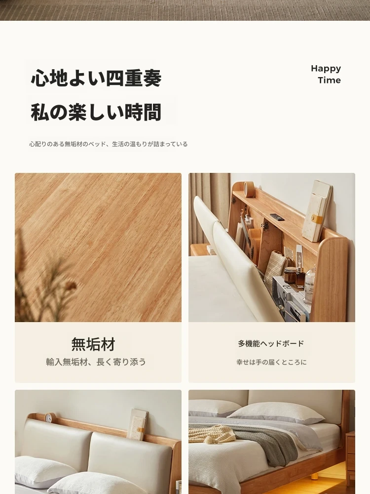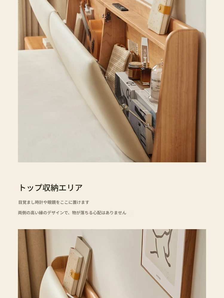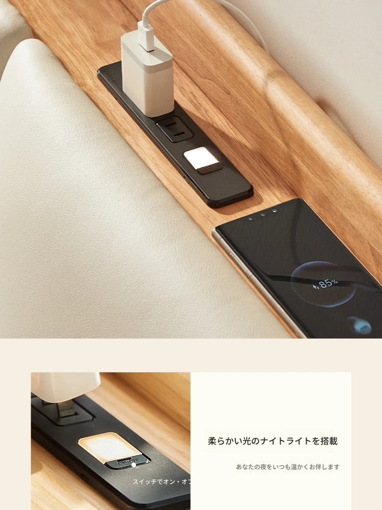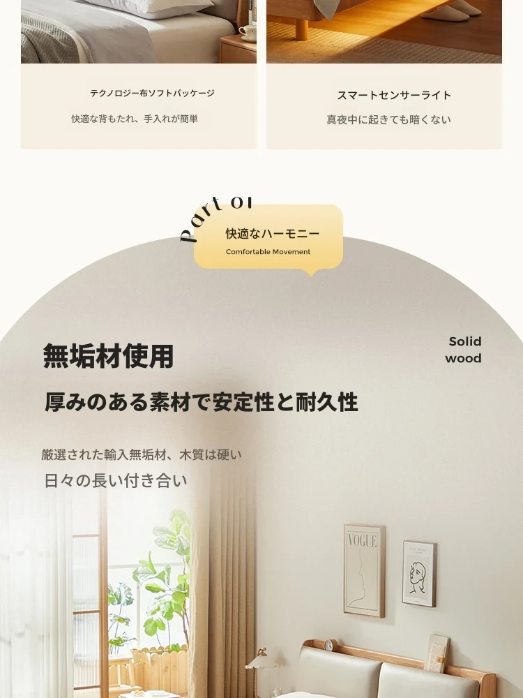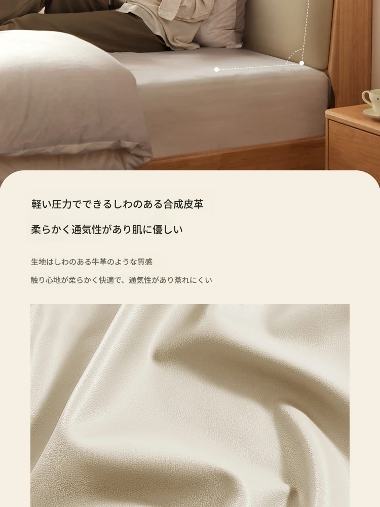 林氏家居 北欧スタイルの天然木製1.5m浮遊式ソフトパッキングダブルベッド - スタイリッシュな収納ヘッドボード付き、快適な眠りをサポートする高品質なデザイン!