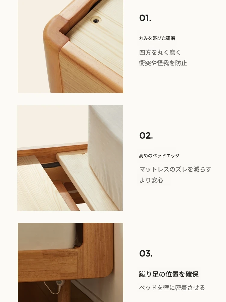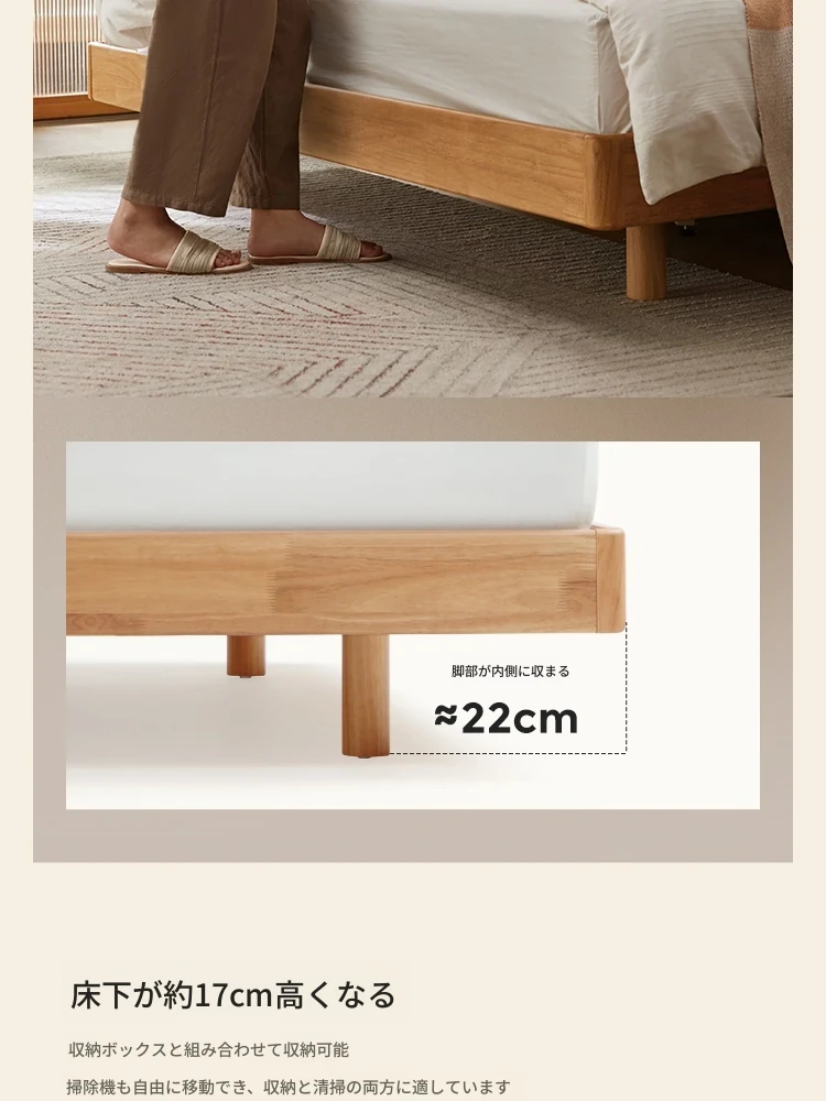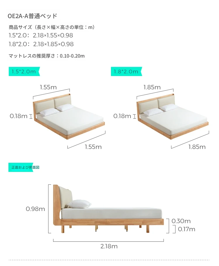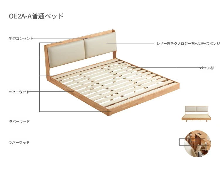 【ナチュラルウッド色】OE2A-Aベッドフレーム・ストレージなしベッド