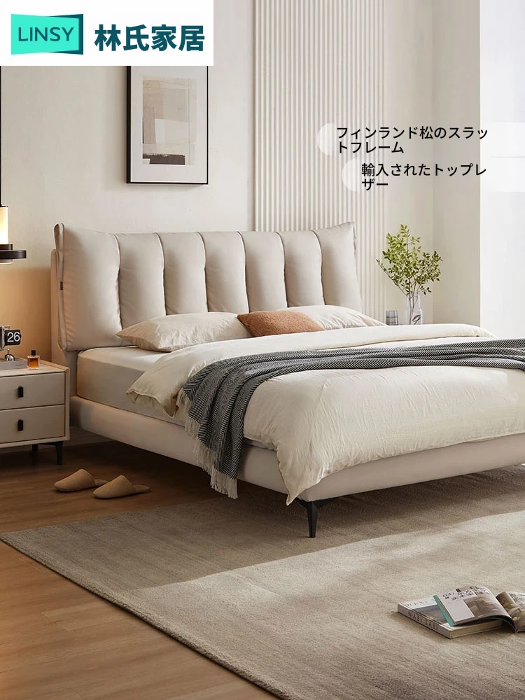 林氏家居のモダンシンプルな主寝室用ダブルベッド - 高品質なトップレザーソフトパッド付き!快適な寝心地で、あなたの生活空間をスタイリッシュに演出します。仏山の信頼できる家具メーカー、林氏木業の逸品!