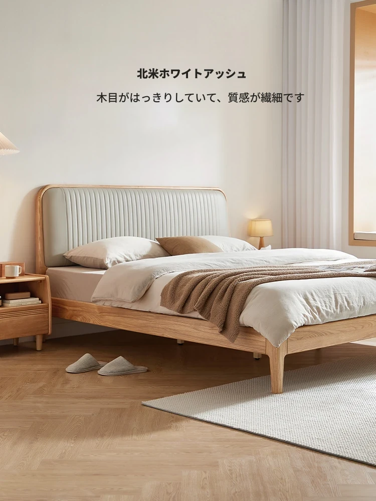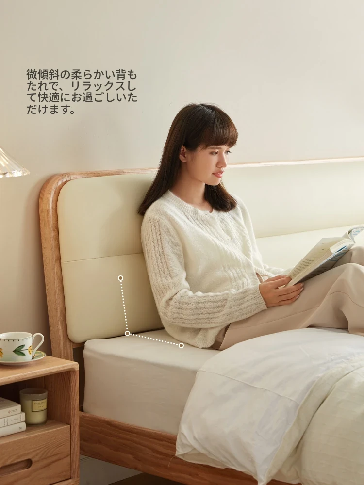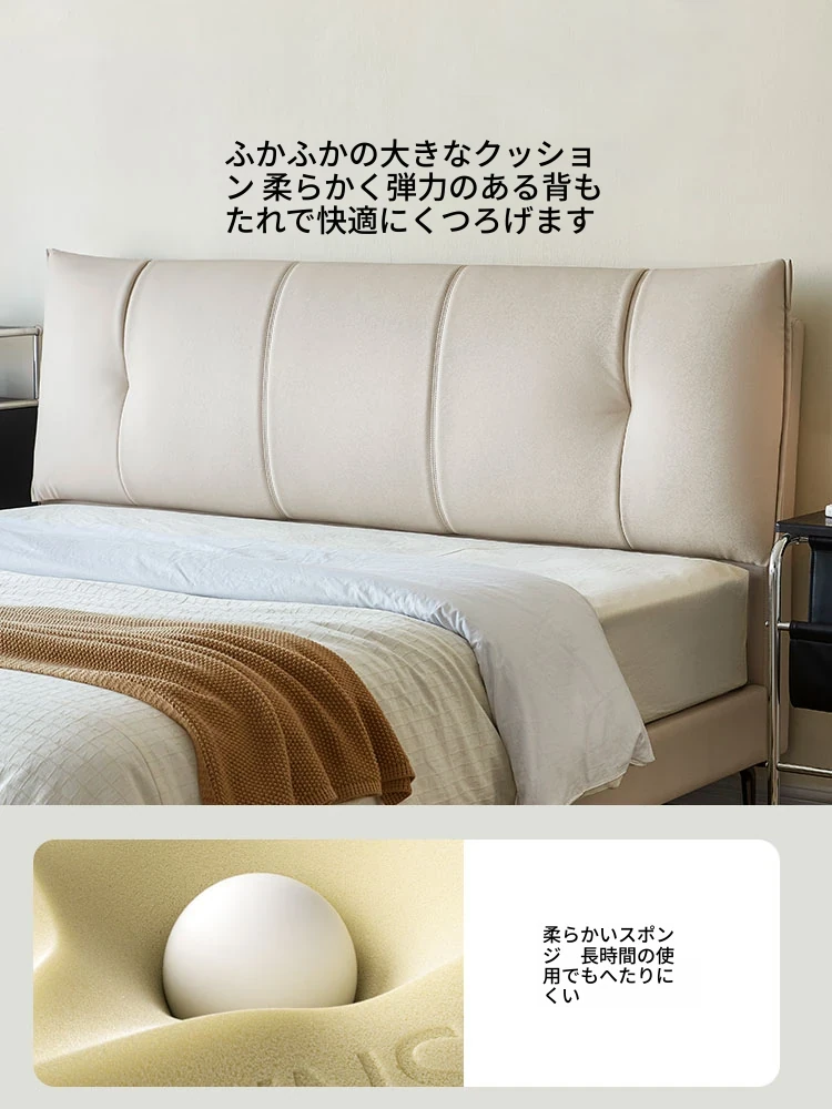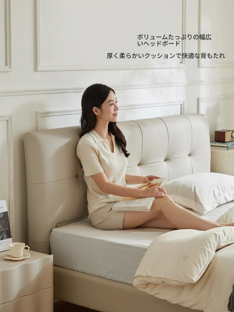 【クリーム色】薄型ヘッドボードタイプ-ガスリフト側開収納ベッド