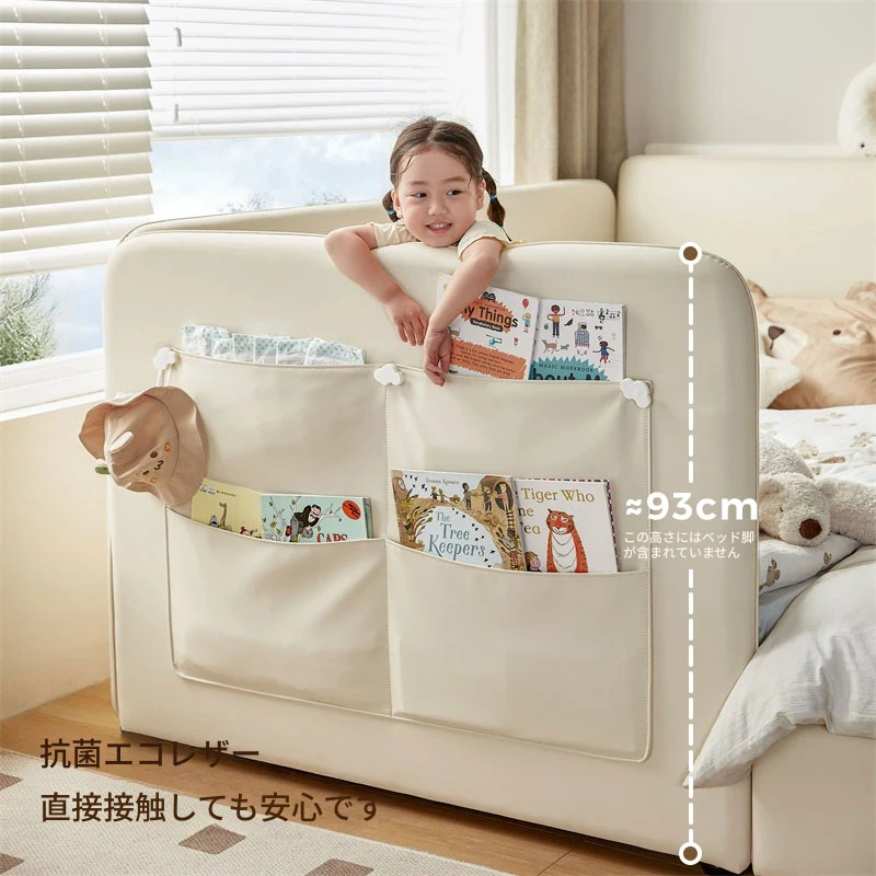 【クリーム色】薄型ヘッドボードタイプ-ガスリフト側開収納ベッド+3Eココナツファイバーマットレス10cm
