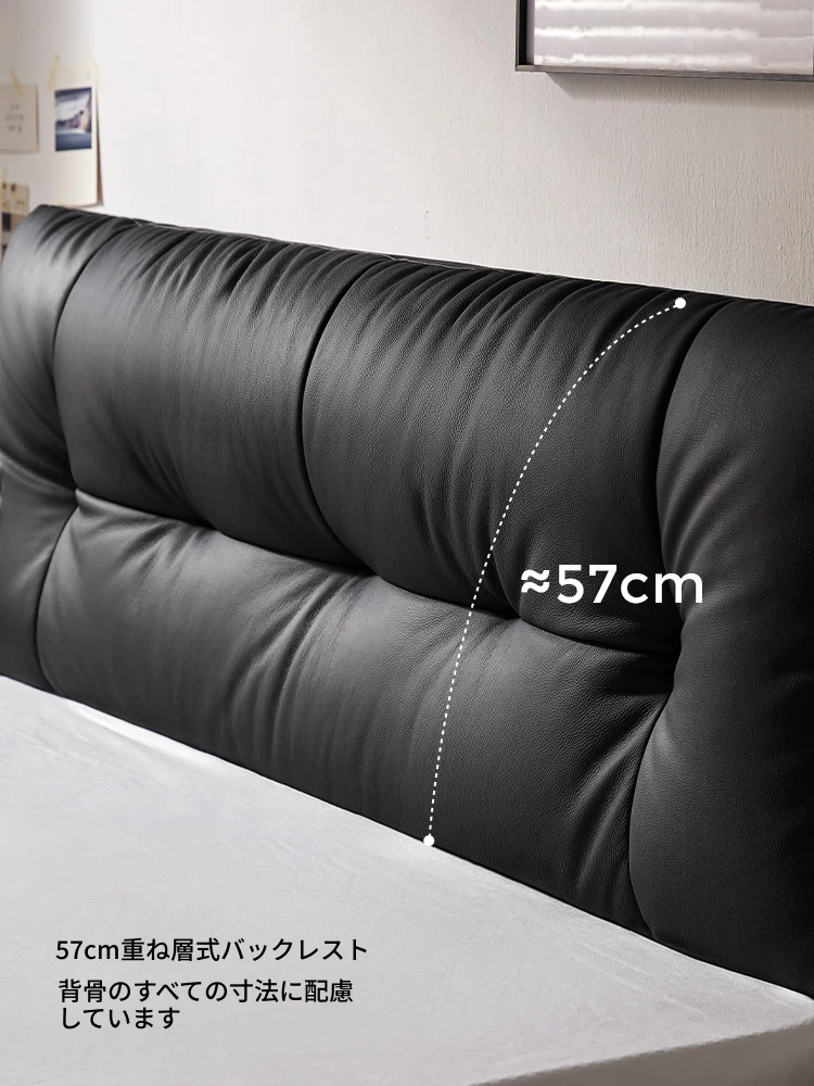 【高級ブラック】薄型ヘッドボードタイプ-ガスリフト側開収納ベッド
