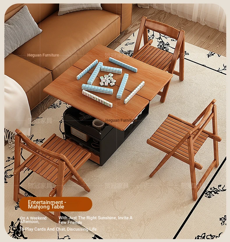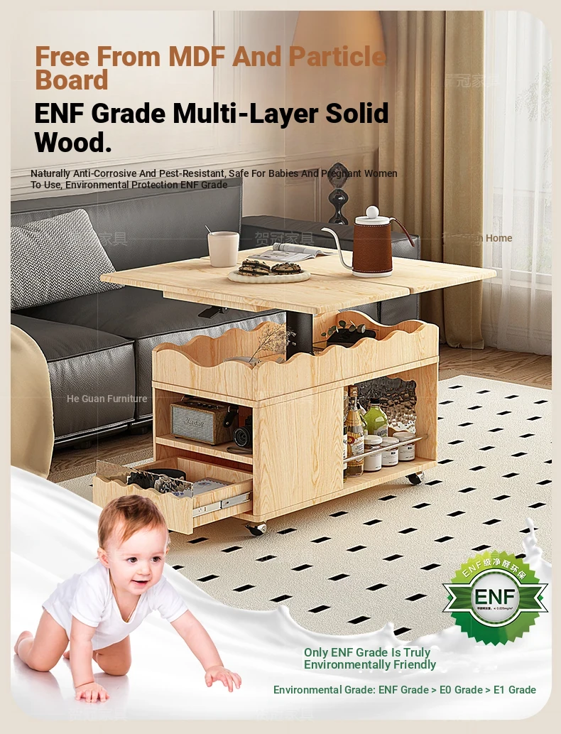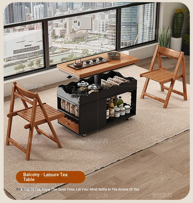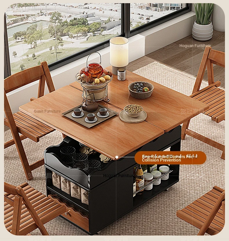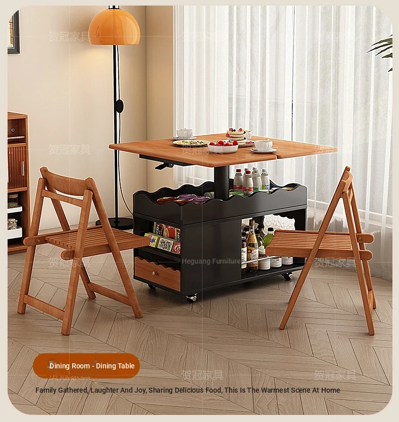 多機能実木天板テーブル 可昇降/可折りたたみ/可動
