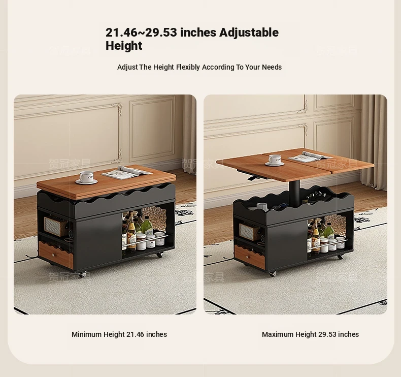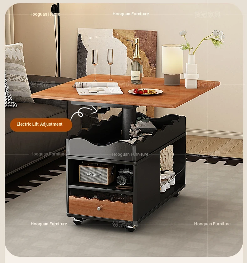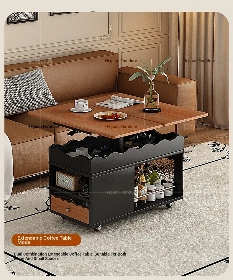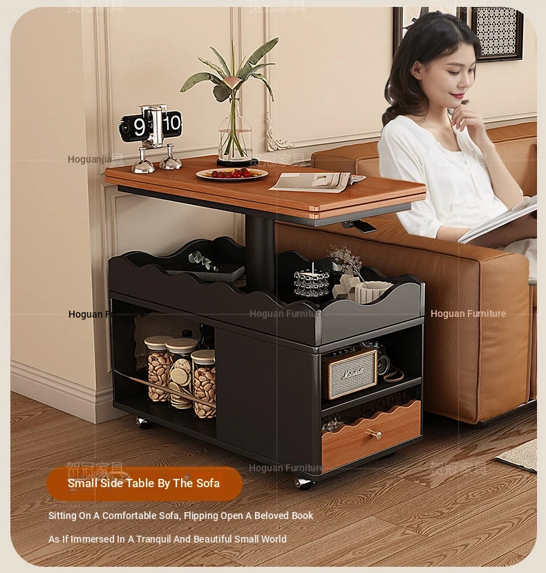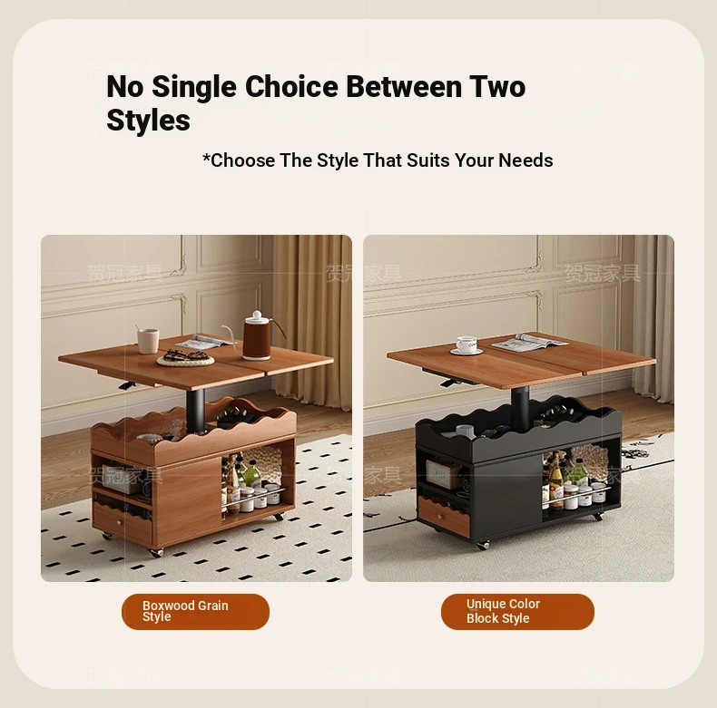 多機能実木天板テーブル 可昇降/可折りたたみ/可動