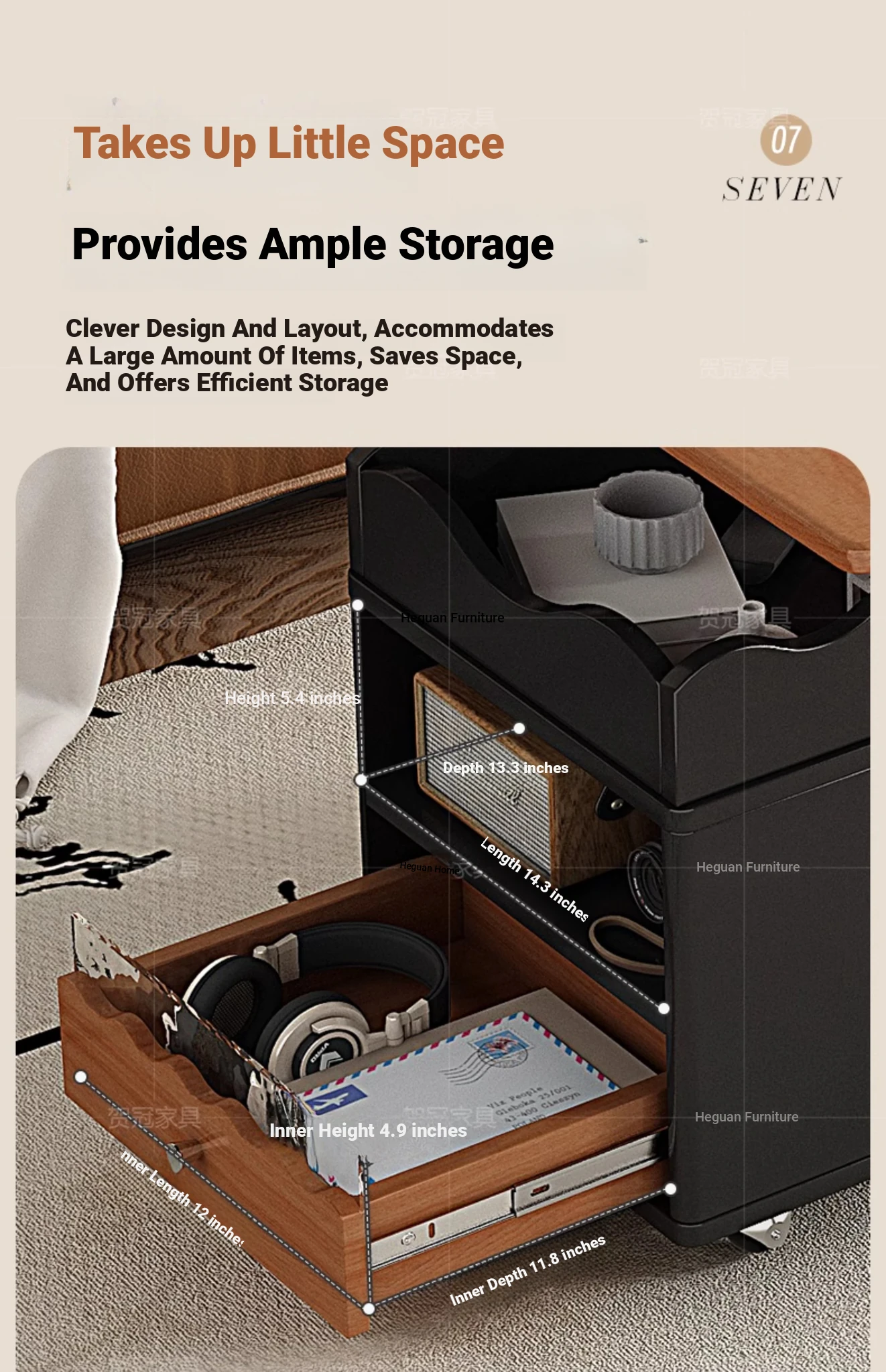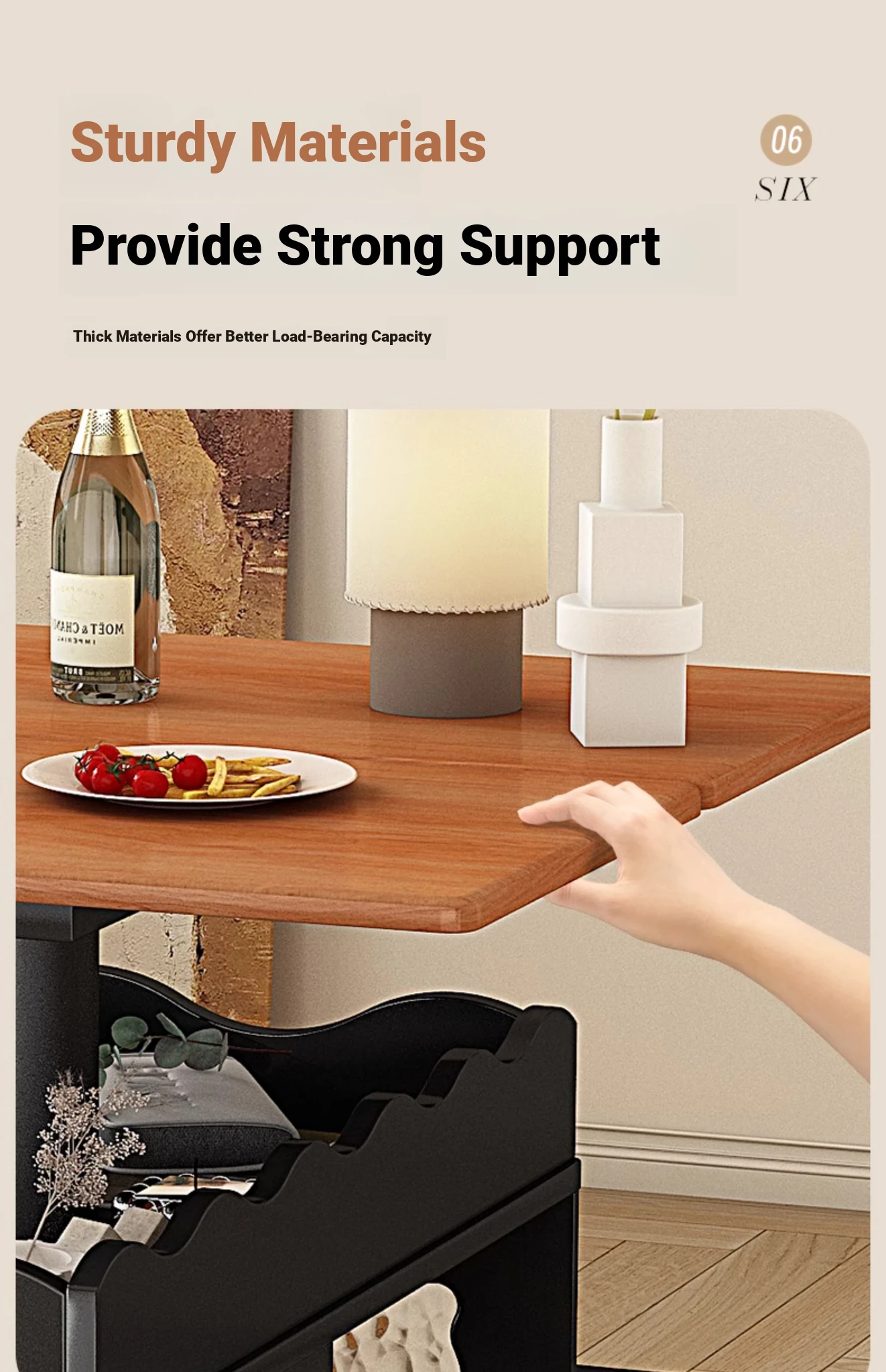 0.7メートル折りたたみ可動茶卓キャビネット【高級ブラック+クルミ木目】 新品予約販売