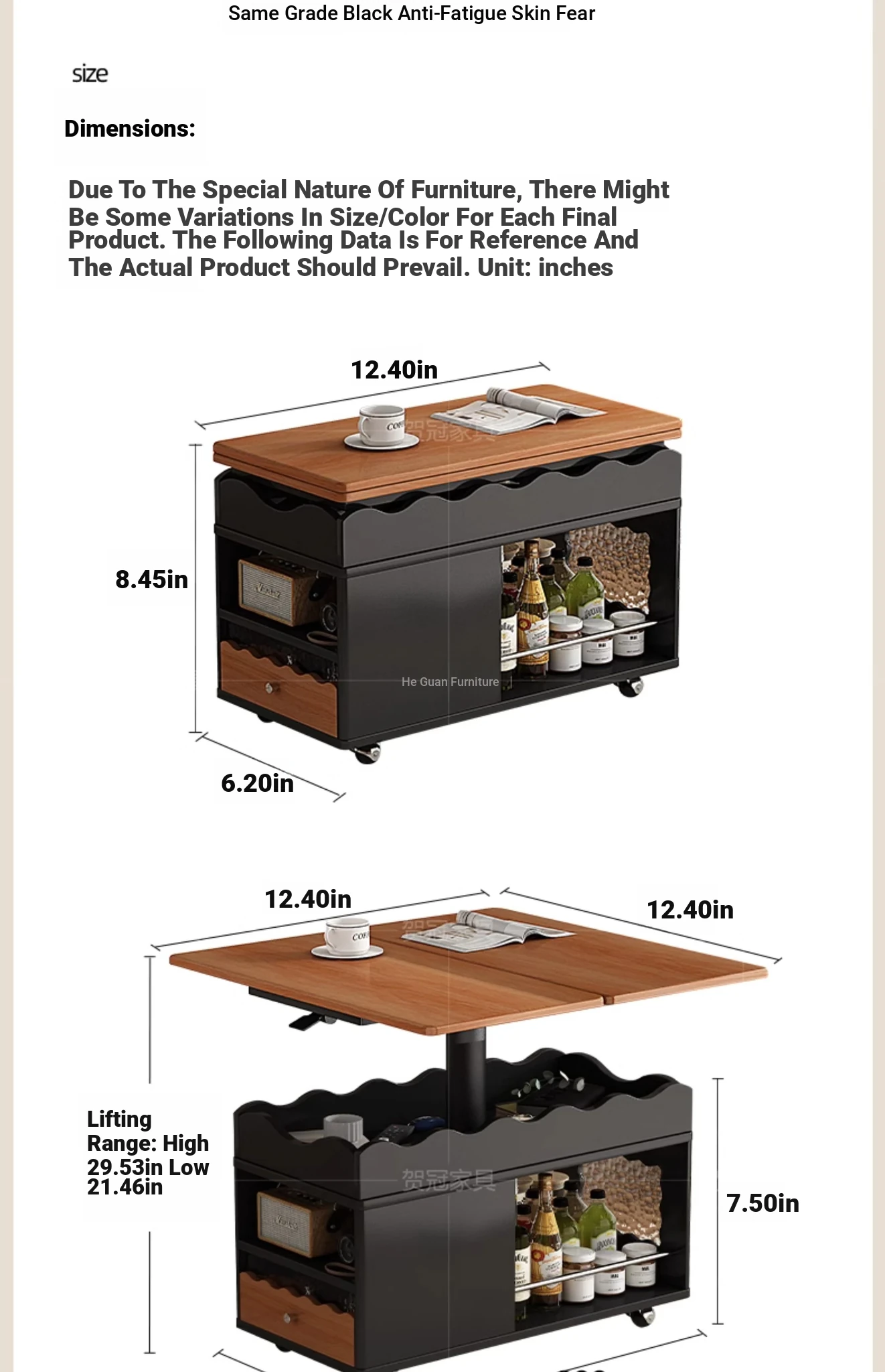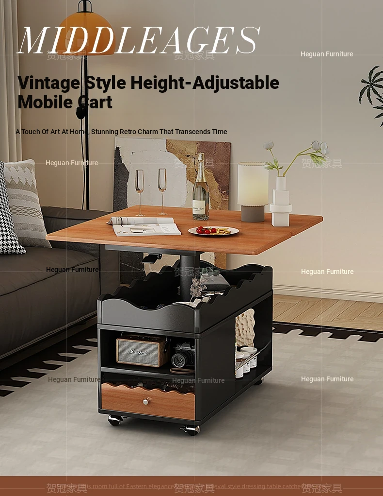 【レトロブラック】0.6メートル可動ひっくり返し昇降テーブル