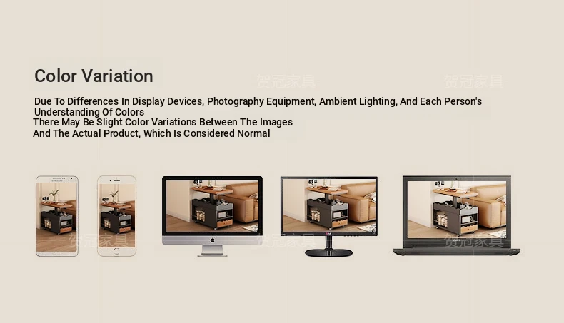 60cm多機能昇降サイドテーブル【クリームホワイト肌感皮目+可昇降回転天板+キャスター+USB充電+LEDライト+指紋ロック】
