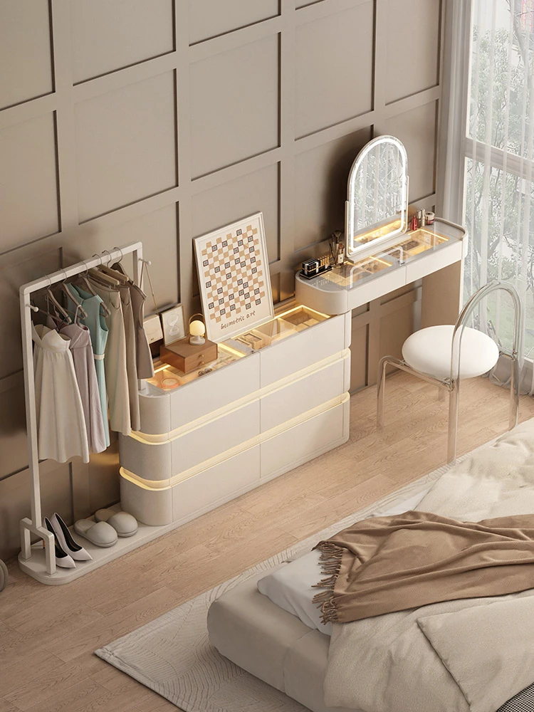 1.5メートルダンスキャビネット+1.2メートルドレッサー+上 cabinet【抗菌肌触り+LEDタッチライト】
